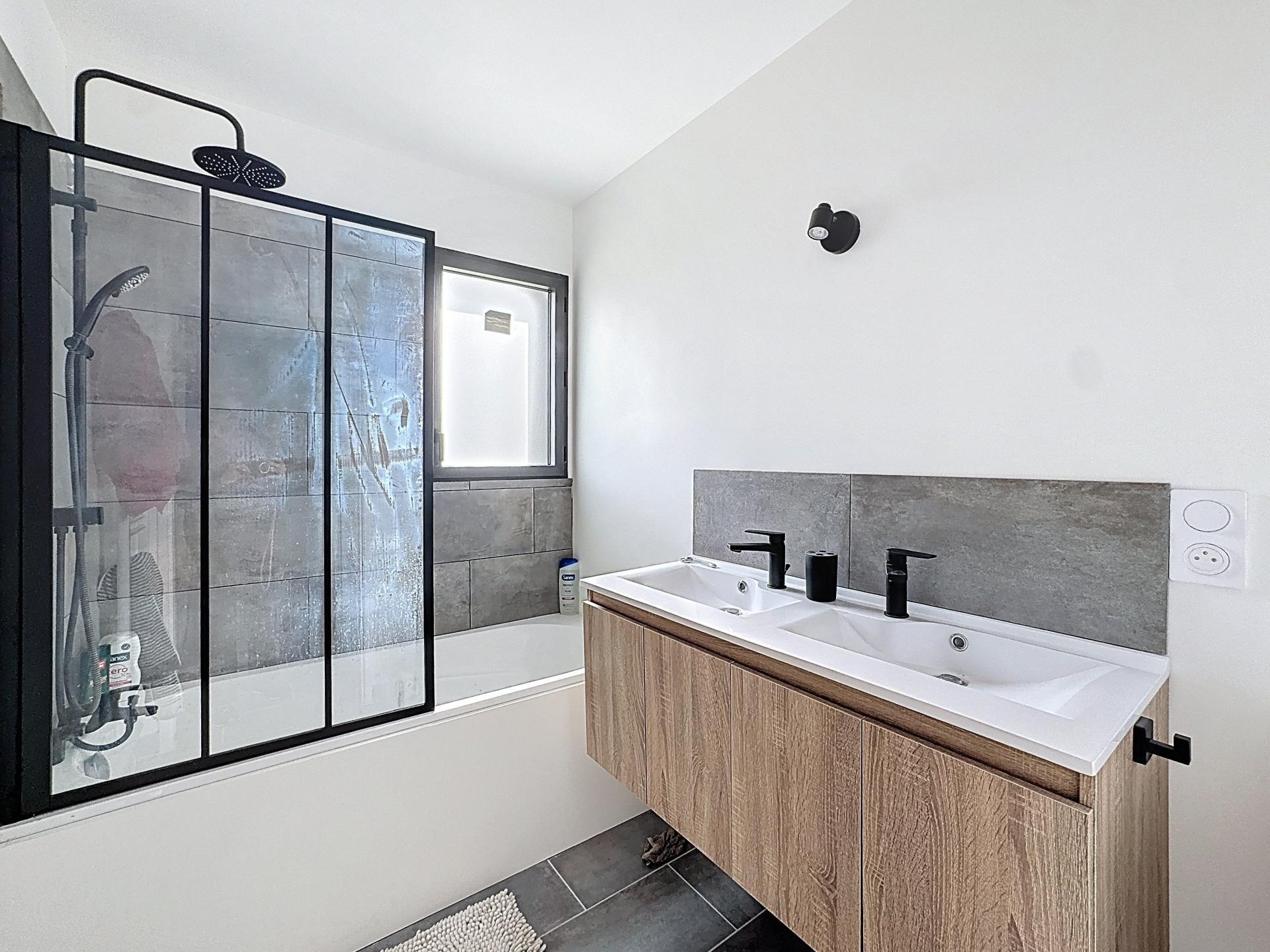 Côté pratique, la maison dispose également d’un double garage avec espace buanderie.