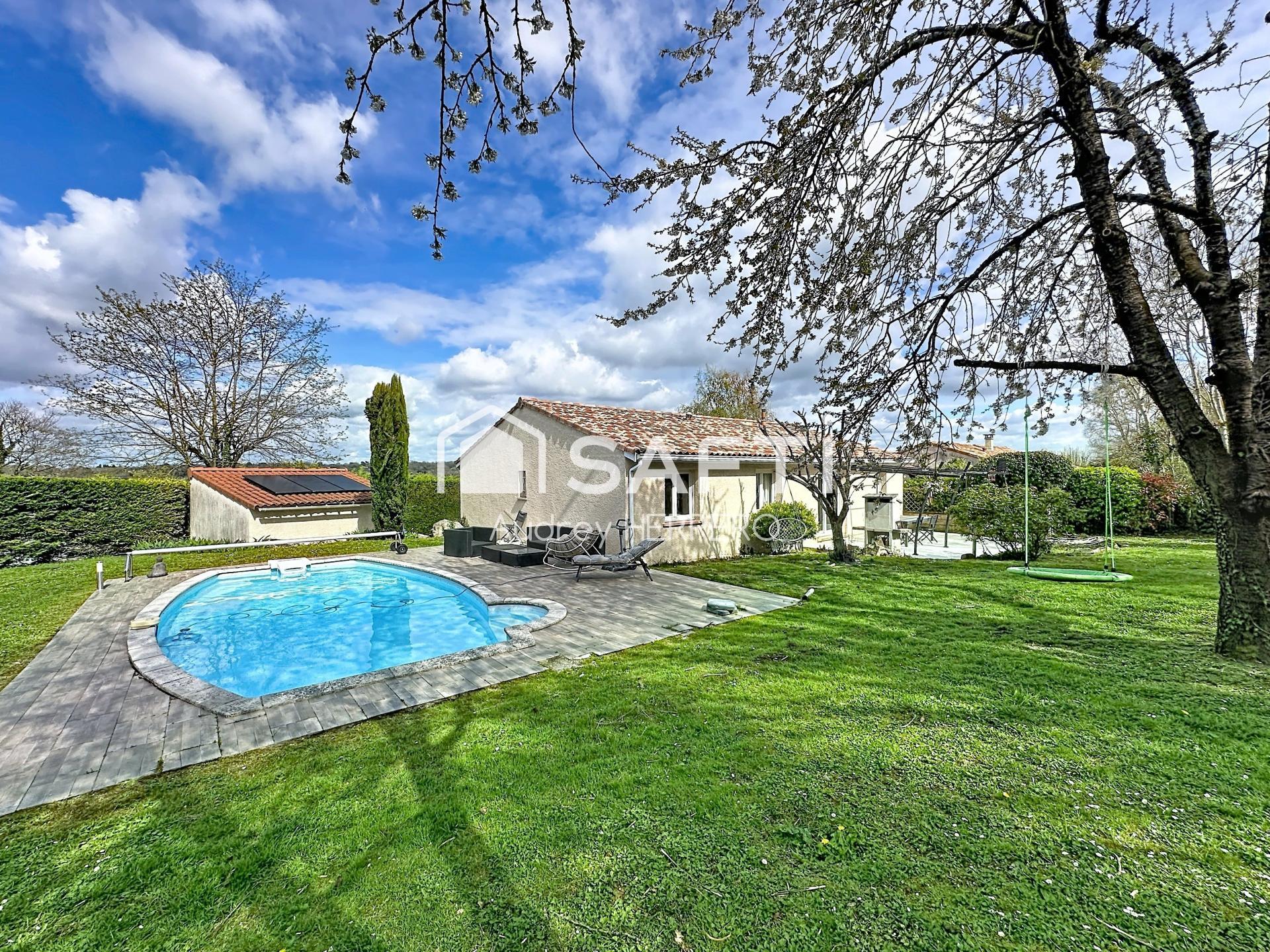 Cette maison de plain pied sur 104 m², construite en 2000 sur un terrain de plus de 900 m², se compose de 5 pièces dont 4 chambres, un bureau, un cellier buanderie, ainsi qu'un grand garage. L'aménagement intérieur fonctionnel et lumineux offre un bel espace de vie, tandis que l'extérieur séduit par sa piscine, parfaite pour se détendre en toute tranquillité. Avec ses 3 chambres et ses aménagements pratiques, cette propriété saura répondre aux besoins et attentes d'une famille en quête de confort et de convivialité.