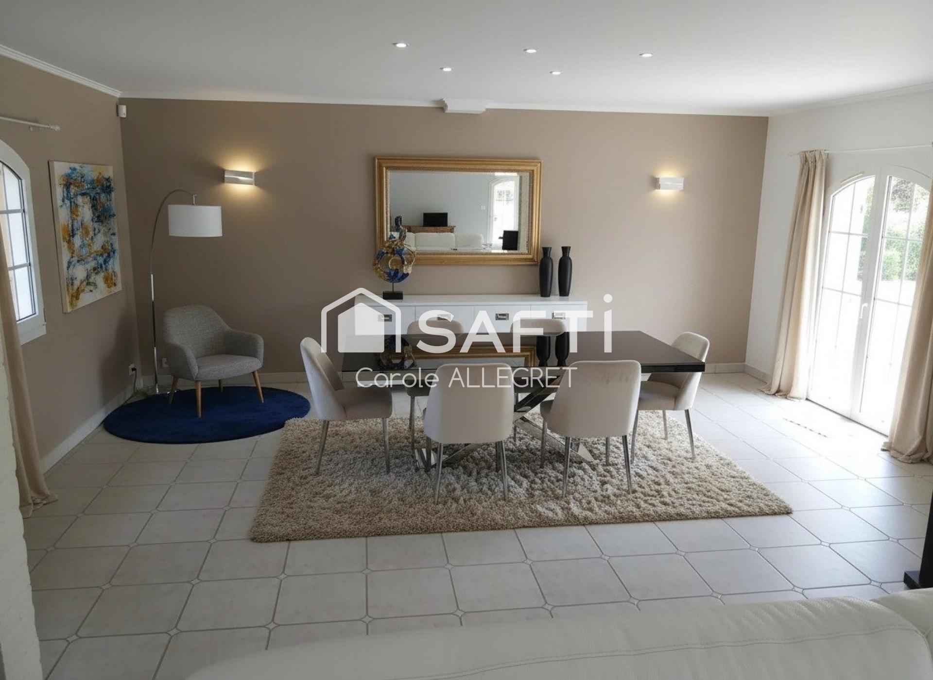 Édifiée sur un terrain arboré de 1 264 m², la maison dispose de nombreux atouts :