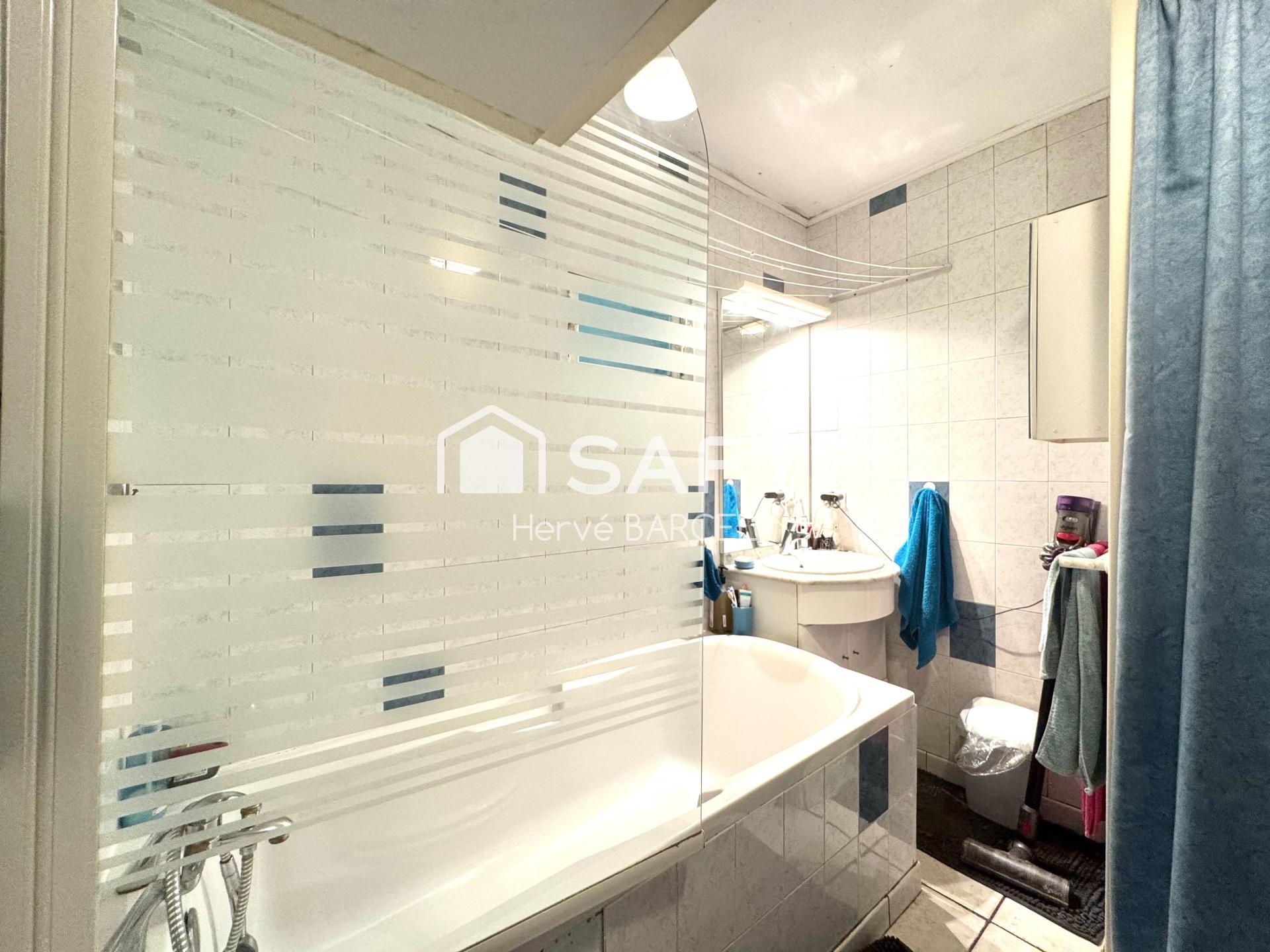 Emplacement central, fort potentiel : 2 T2, 2 grands garages, toit-terrasse, cave. Idéal investisseur ou projet familial à rénover.