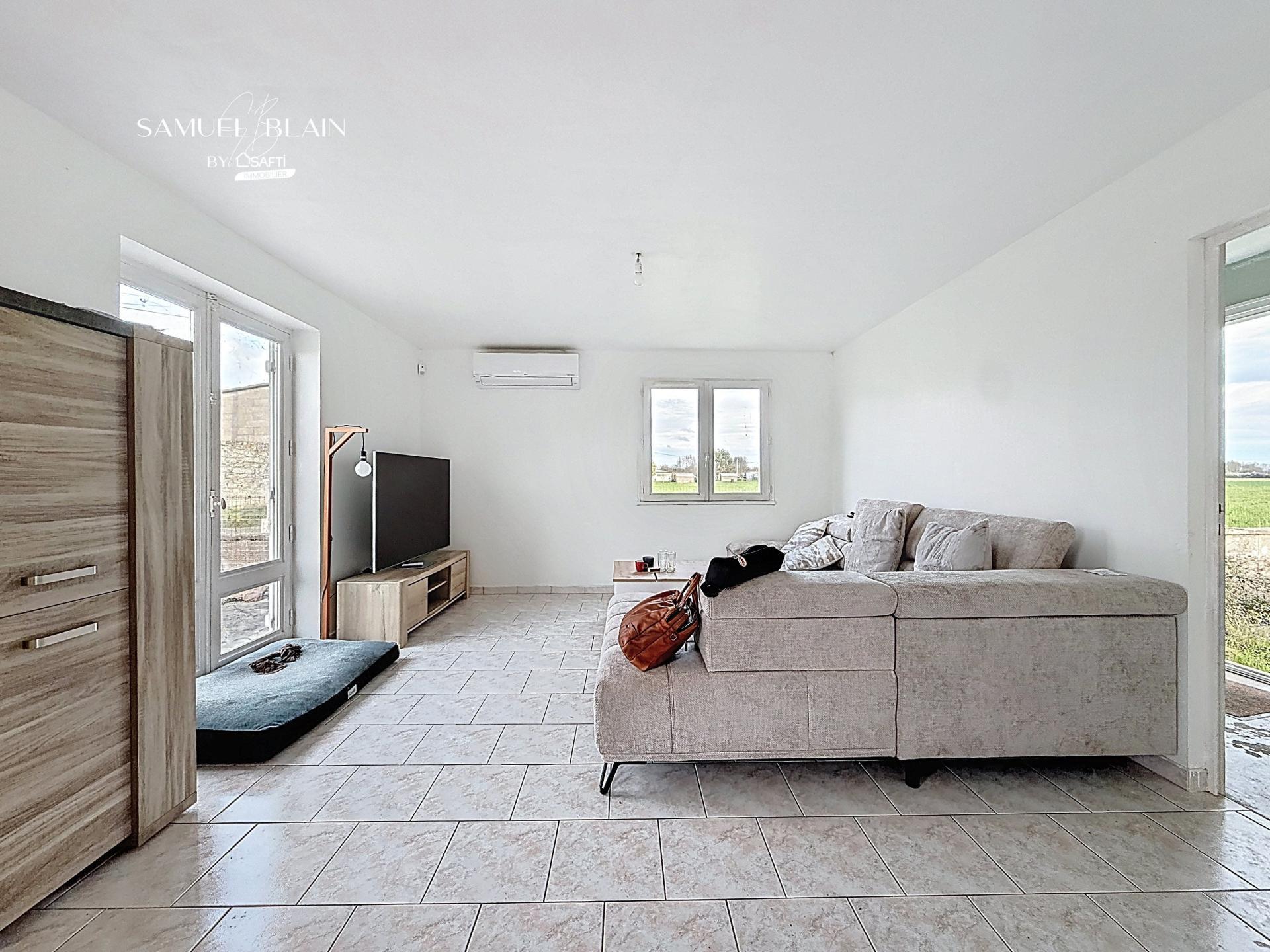Nouveauté, maison de plain pied 80 m2 à terminer de 1960 comprenant entrée, coin cuisine, salon séjour, 2 chambres, salle de douche, toilette, véranda, terrasse, puits + maison type longère, grand hangar et chai, garage, préau, le tout sur un terrain clos de 3300 M2. Assainissement raccordé/conforme, pompe à chaleur air/air.