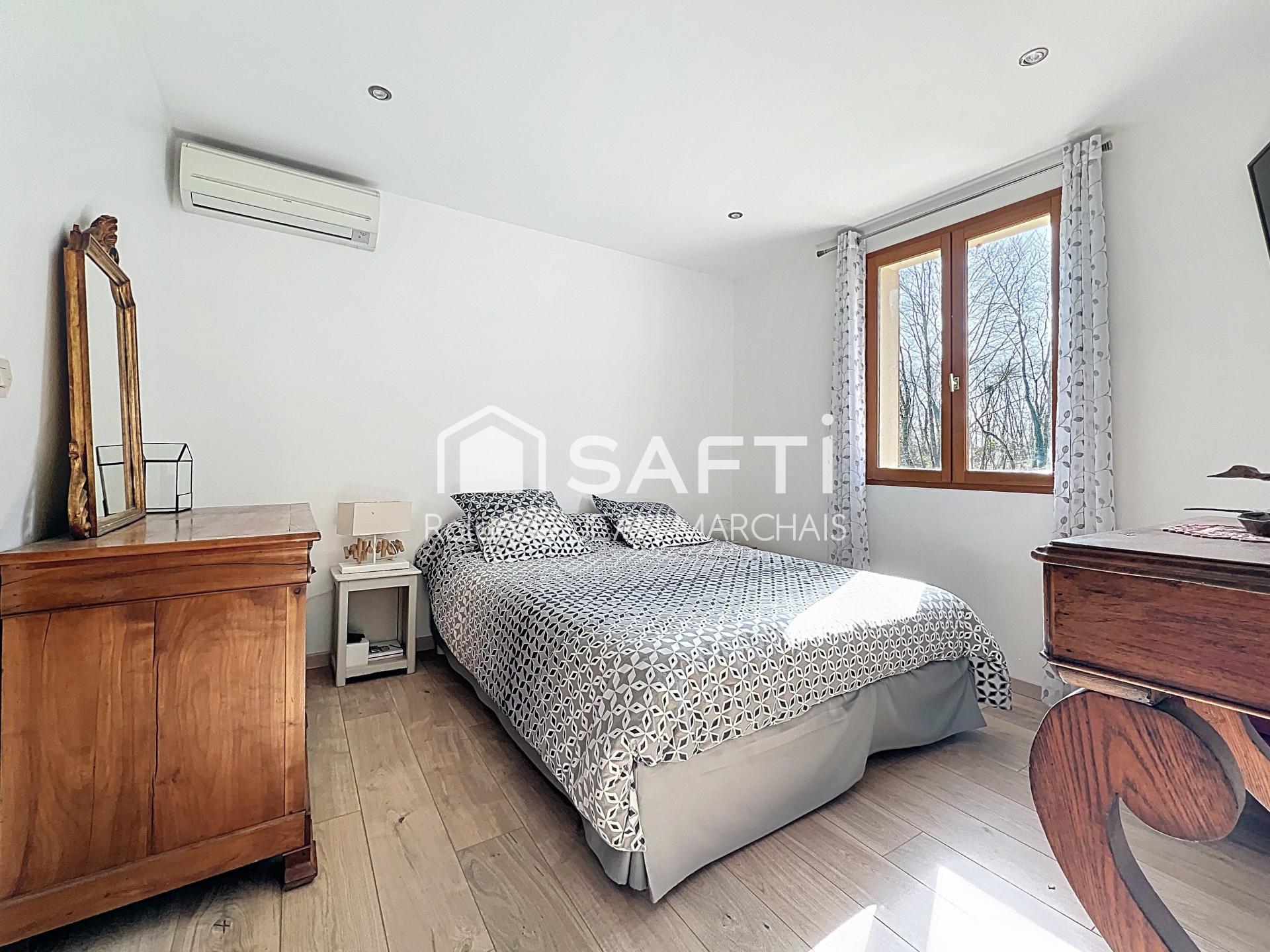 Avec un séjour de 50 m2 donnant sur le jardin et le plan d'eau,un poëlle mixte pour plus de confort, vous serez dans un véritable cocon !