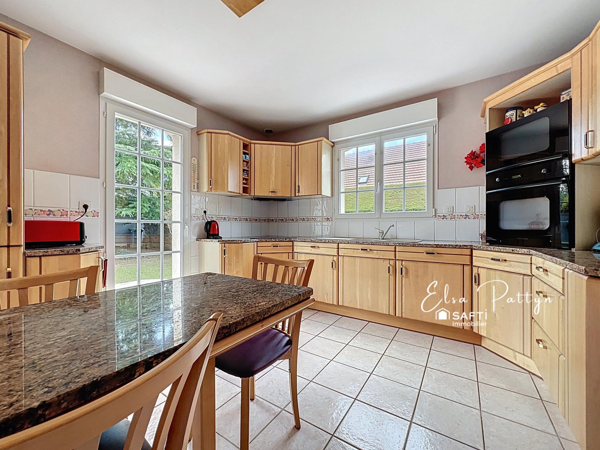 À l’étage, un palier dessert deux chambres, un dressing et une salle de bain avec douche. La maison est complétée par un sous-sol complet comprenant un espace buanderie, un grand garage pouvant accueillir deux véhicules, un espace atelier, ainsi que des équipements appréciables tels qu’un aspirateur centralisé, un vide-ordures et un ballon d’eau récent. Une maison complète, bien entretenue, idéale pour une famille à la recherche de confort et de fonctionnalité. À découvrir sans tarder.