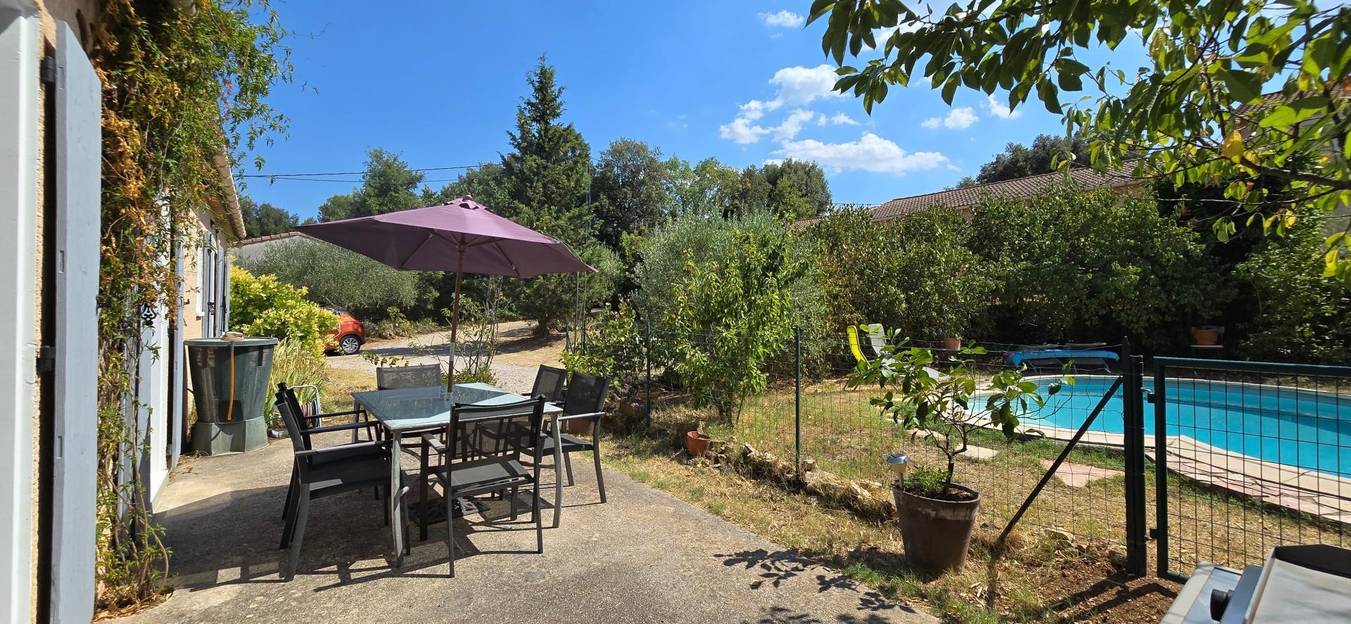 Dotée d'un double garage, cette propriété dispose également d'un agréable jardin avec piscine, deux terrasses, offrant un espace extérieur propice à la détente et aux moments conviviaux en famille ou entre amis.