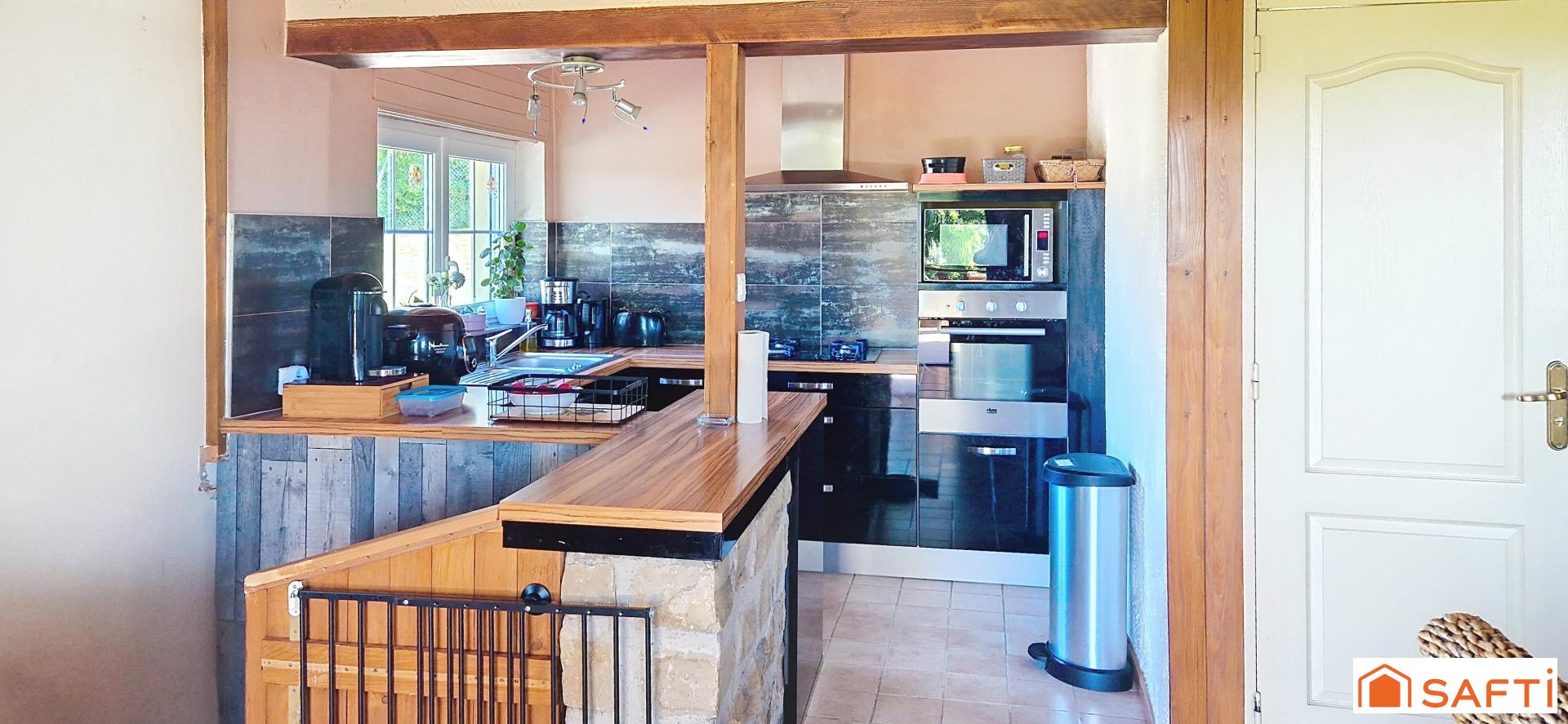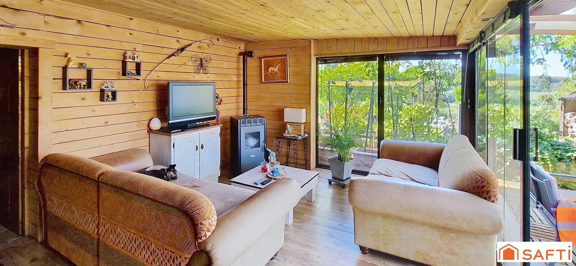 Côtés équipements cette maison dispose d'un poêle à granulés, de la climatisation réversible, d'une cheminée à bois ainsi que du double vitrage PVC sur tout le bien.