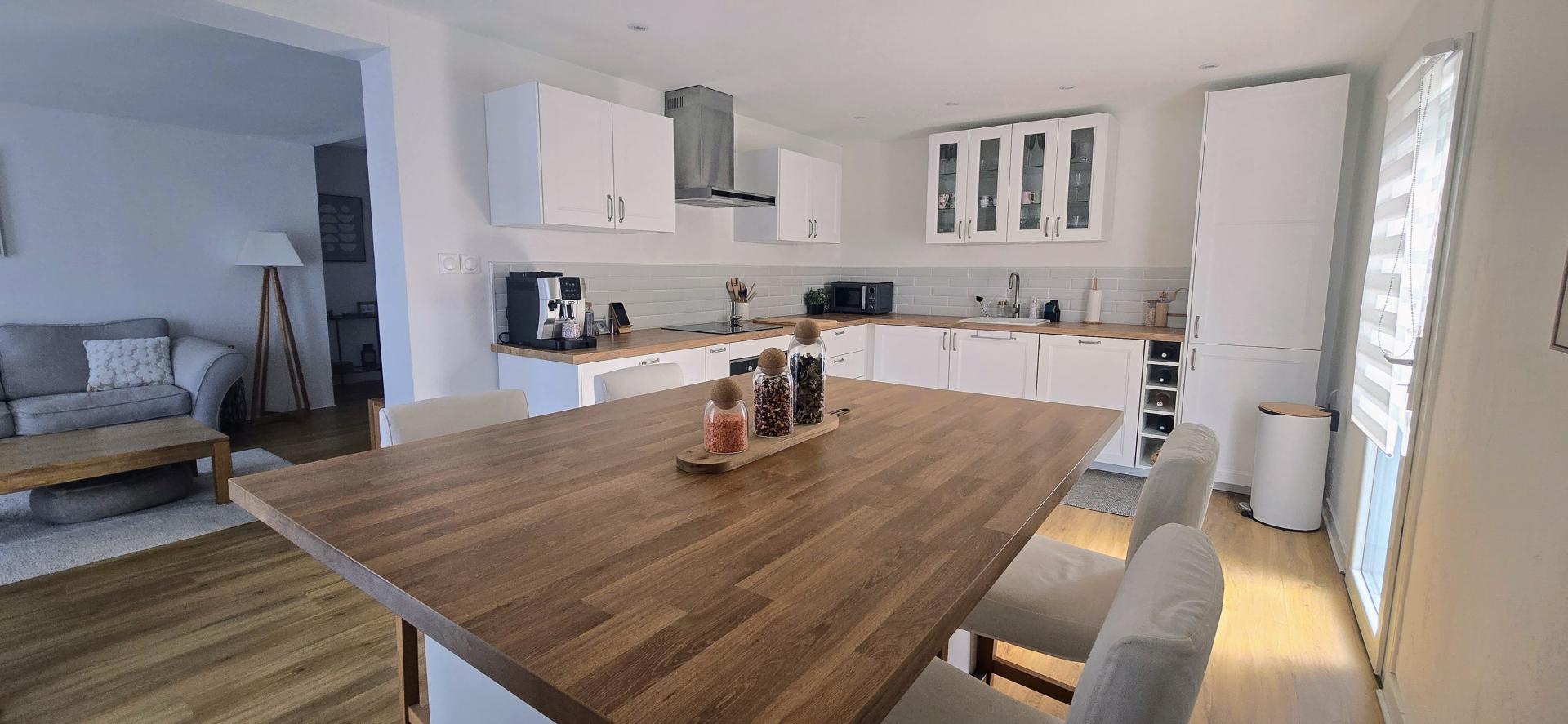 L'intérieur séduit par sa luminosité, son parquet continu et sa cuisine de standing avec îlot central. Au rez-de-chaussée, une suite parentale avec dressing et salle d'eau. À l'étage, trois chambres et une pièce modulable à personnaliser selon vos besoins.