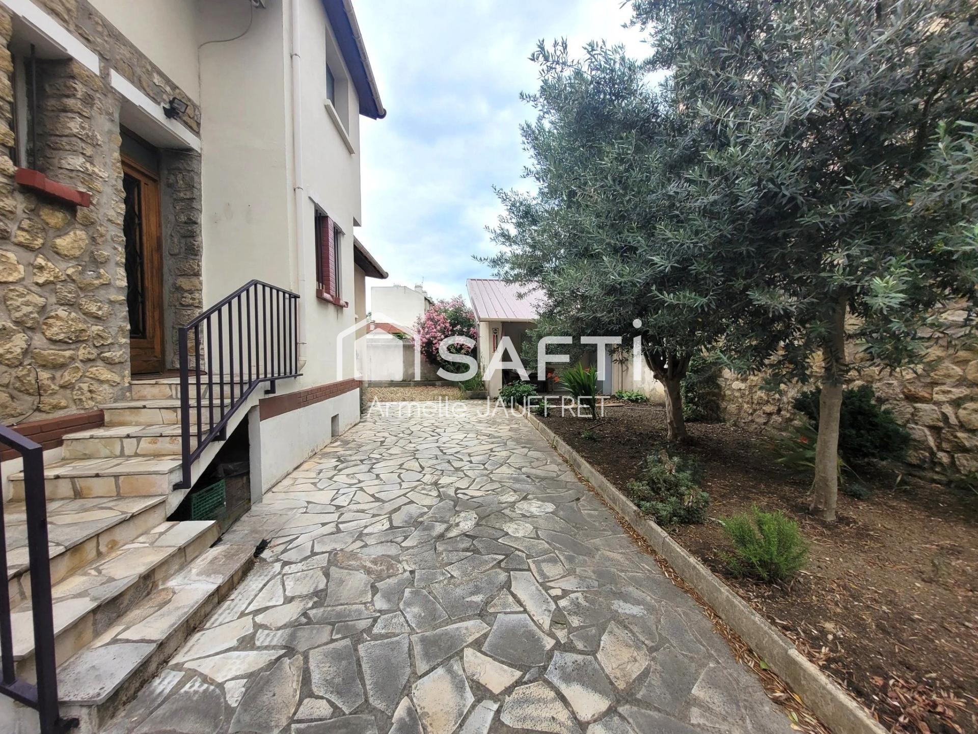 Belle maison sur sous-sol total sur terrain arboré tout à pied: RERB, métro, bus, commerces, écoles à quelques minutes, 3 places de parking