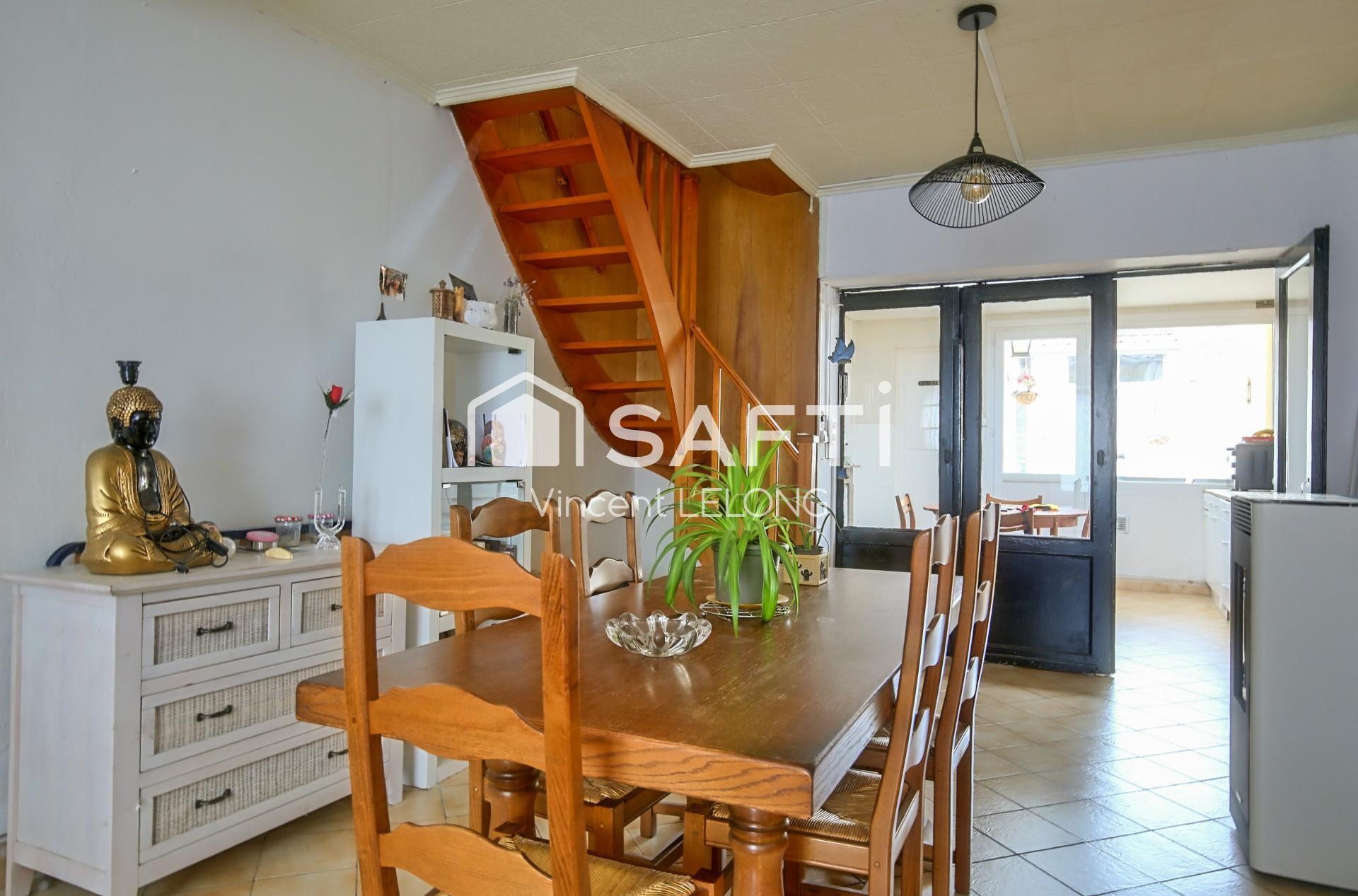 Cette propriété de 80 m² sur un terrain de 86 m² se compose d'une belle pièce de vie au rez-de-chaussée, d'une cuisine spacieuse, d'une salle de bains et à l'étage, de deux chambres de 11 et 15 m² respectivement. Les éléments récents tels que les menuiseries, le poêle à granulés et la VMC neuve ajoutent du confort à ce bien. À cela s'ajoutent une cour et une dépendance, offrant des possibilités d'aménagement et de rangement supplémentaires.