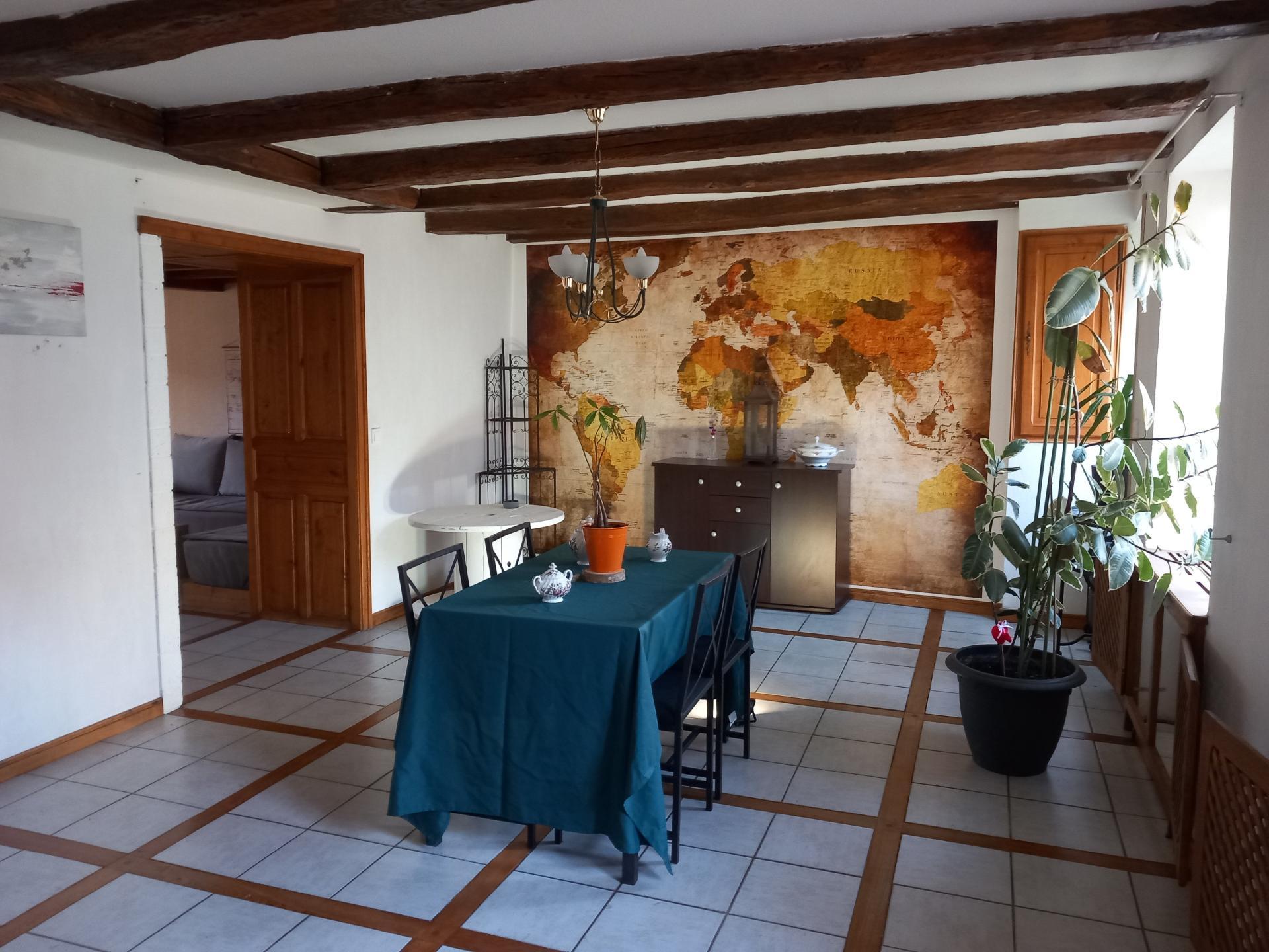 La maison comprend 6 pièces, dont 3 chambres, offrant ainsi un espace de vie généreux et fonctionnel. Son chauffage central au bois et une pompe à chaleur assurent un confort thermique optimal et économique toute l'année. La cuisine d'été avec terrasse à l’arrière de la maison, constitue un véritable atout pour profiter des journées ensoleillées en plein air.L'appartement de 50 m² env., situé au dessus du garage comporte deux chambres, cuisine équipée et salle de bain.
