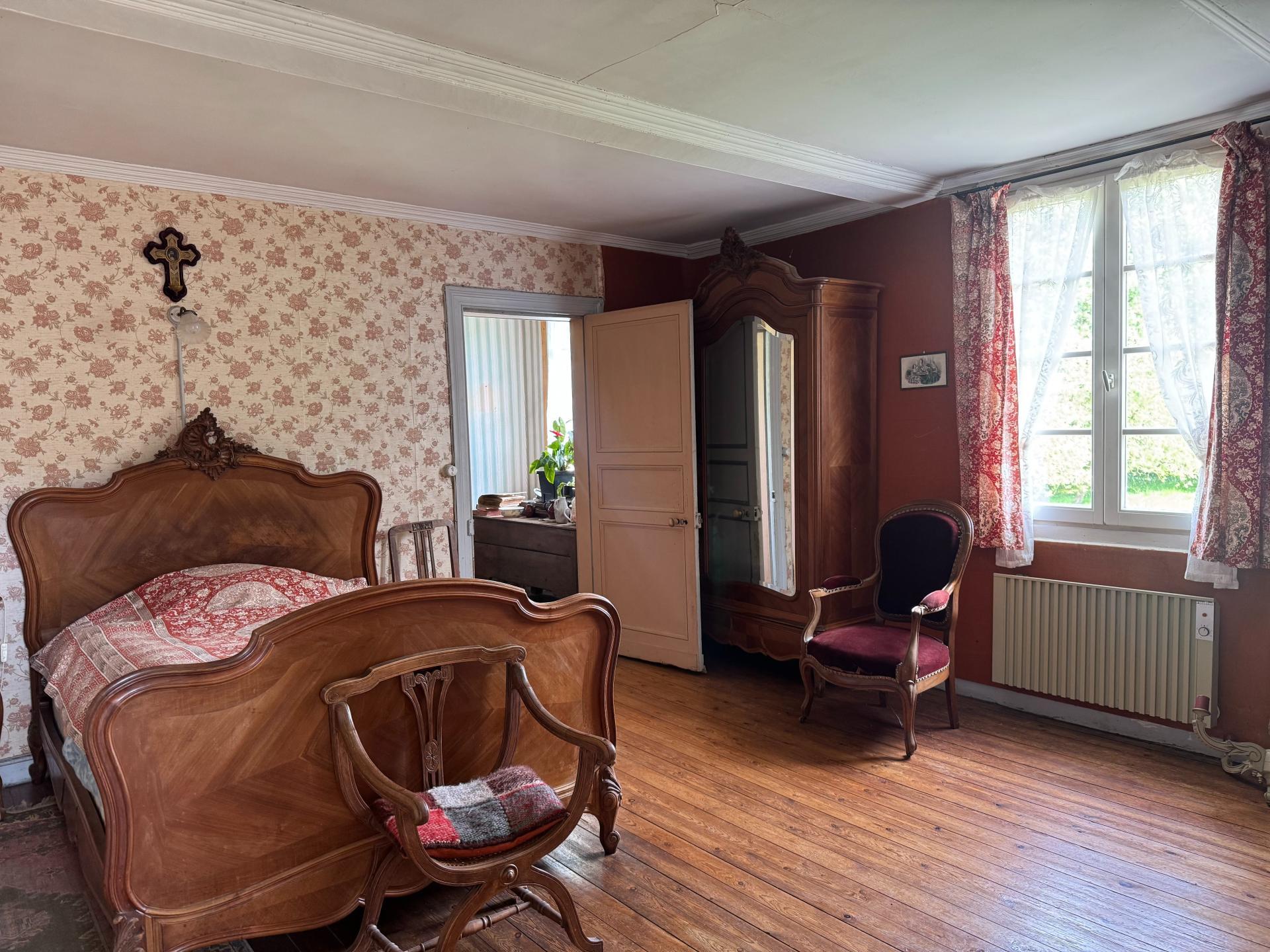 La maison d'habitation : Les volumes généreux permettent d'imaginer une rénovation à la hauteur de vos envies. Le rez-de-chaussée se compose d'une vaste entrée desservant d'un côté un séjour salon, et de l'autre une salle à manger. Une cuisine familiale, avec son arrière cuisine, et la buanderie complètent ce niveau. A l'étage, vous trouverez 5 belles chambres, dont 2 avec un accès indépendant de l'extérieur, et une salle de douche avec WC.