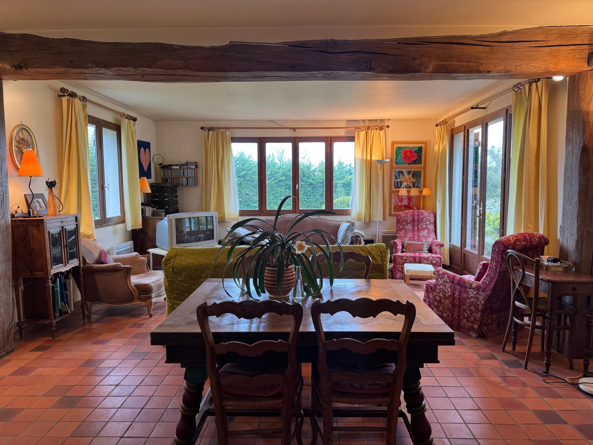 Sur la charmante commune de Cambremer, nichée dans un environnement verdoyant, cette maison construite en 1974 et agrandie en 1990 séduira les amoureux de nature et d’espace. Implantée sur un très joli terrain arboré à l’esprit champêtre, le jardin est entretenu dans le respect de la nature, laissant aux arbres et à la végétation toute leur place.