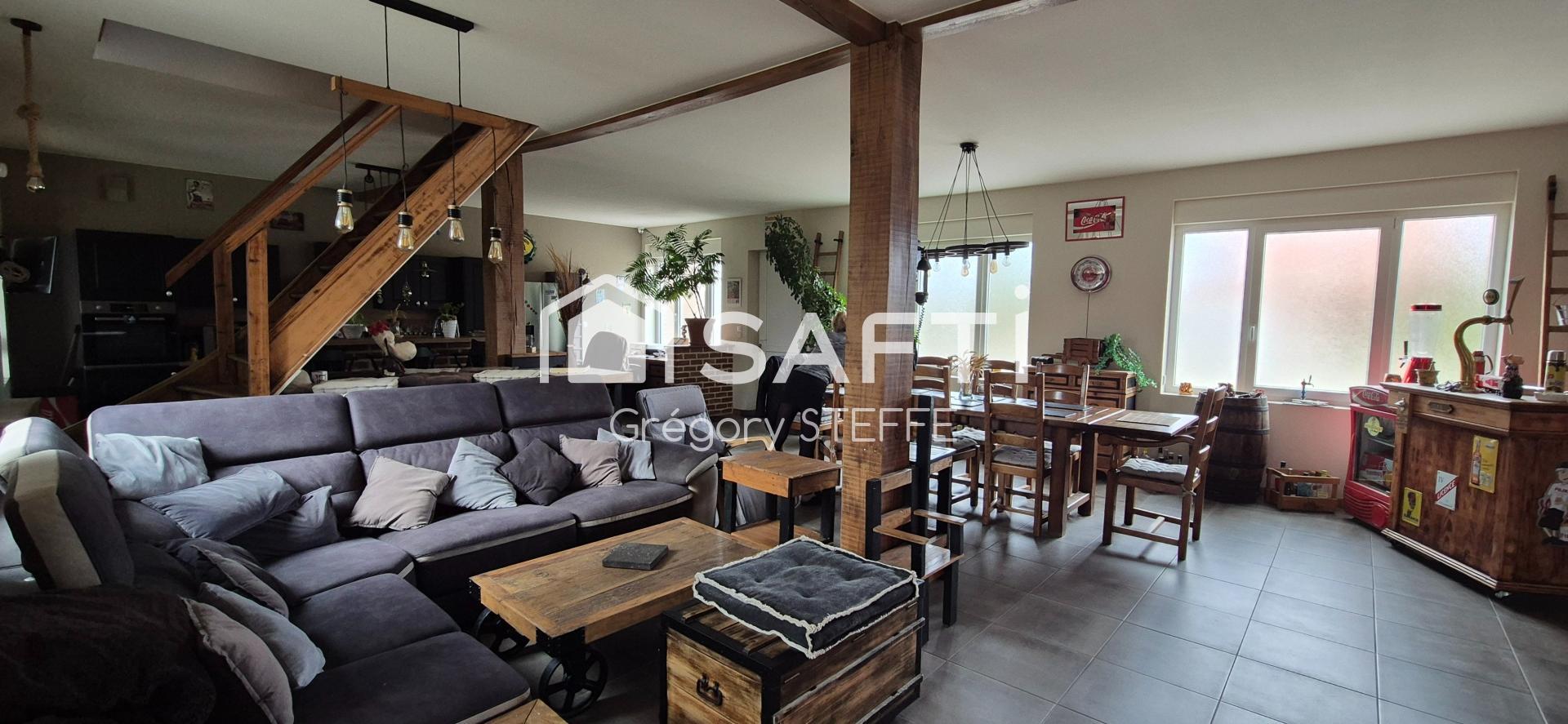 Située dans un environnement recherché, cette maison de village rénovée développe 162 m² habitables. Le rez-de-chaussée s’organise autour d’un vaste espace de vie de 75 m², lumineux et convivial, idéal pour les repas en famille, les soirées d’hiver au coin du poêle ou les fêtes entre amis. La cuisine ouverte, moderne et fonctionnelle, est complétée par une arrière-cuisine, une salle d’eau, un WC indépendant et un local chaufferie.