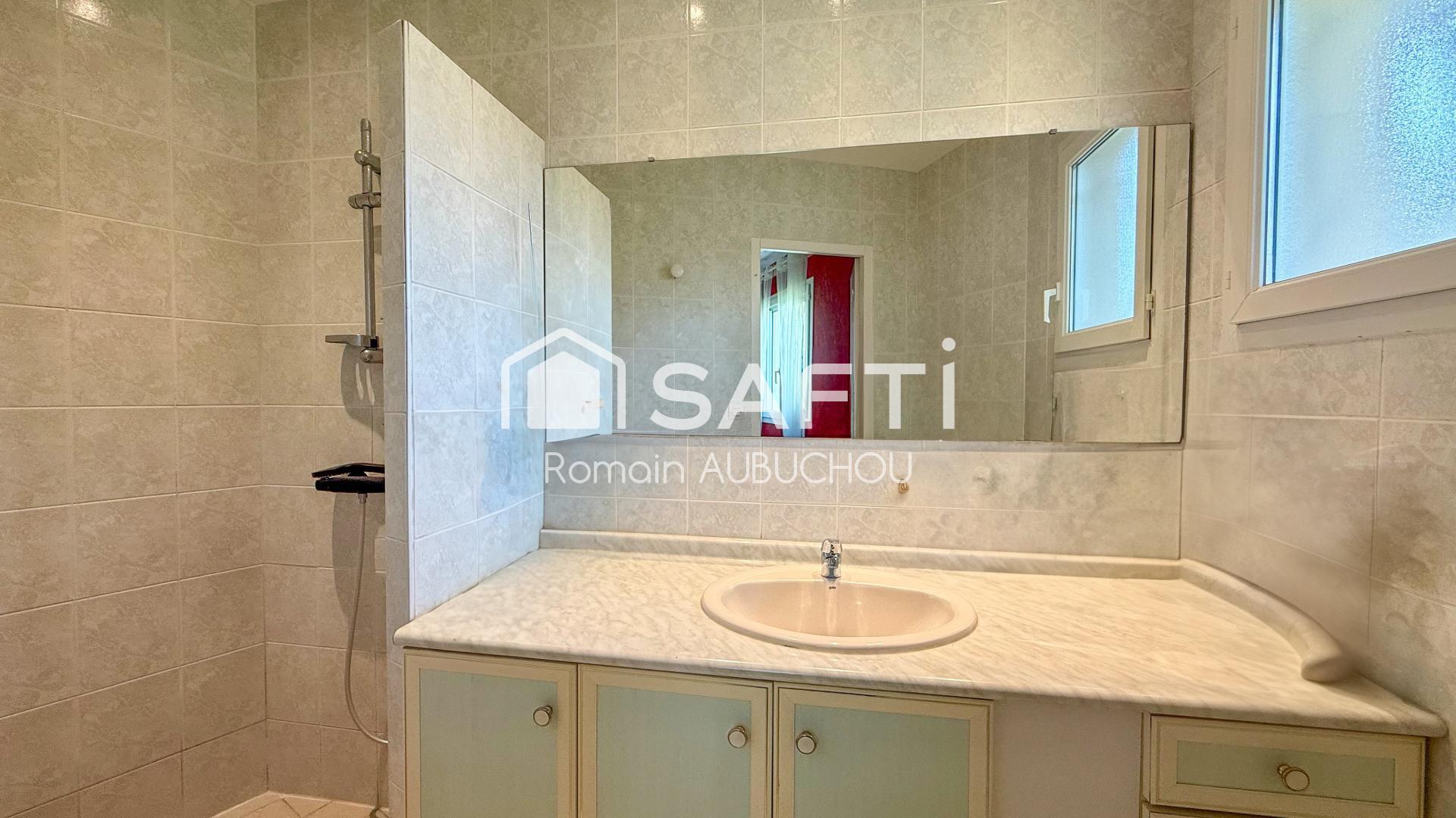 Construite en 1997, la maison climatisée comprend une entrée, un séjour lumineux, une cuisine équipée, un cellier, trois chambres, une salle de bain, une salle d’eau et des WC séparés.