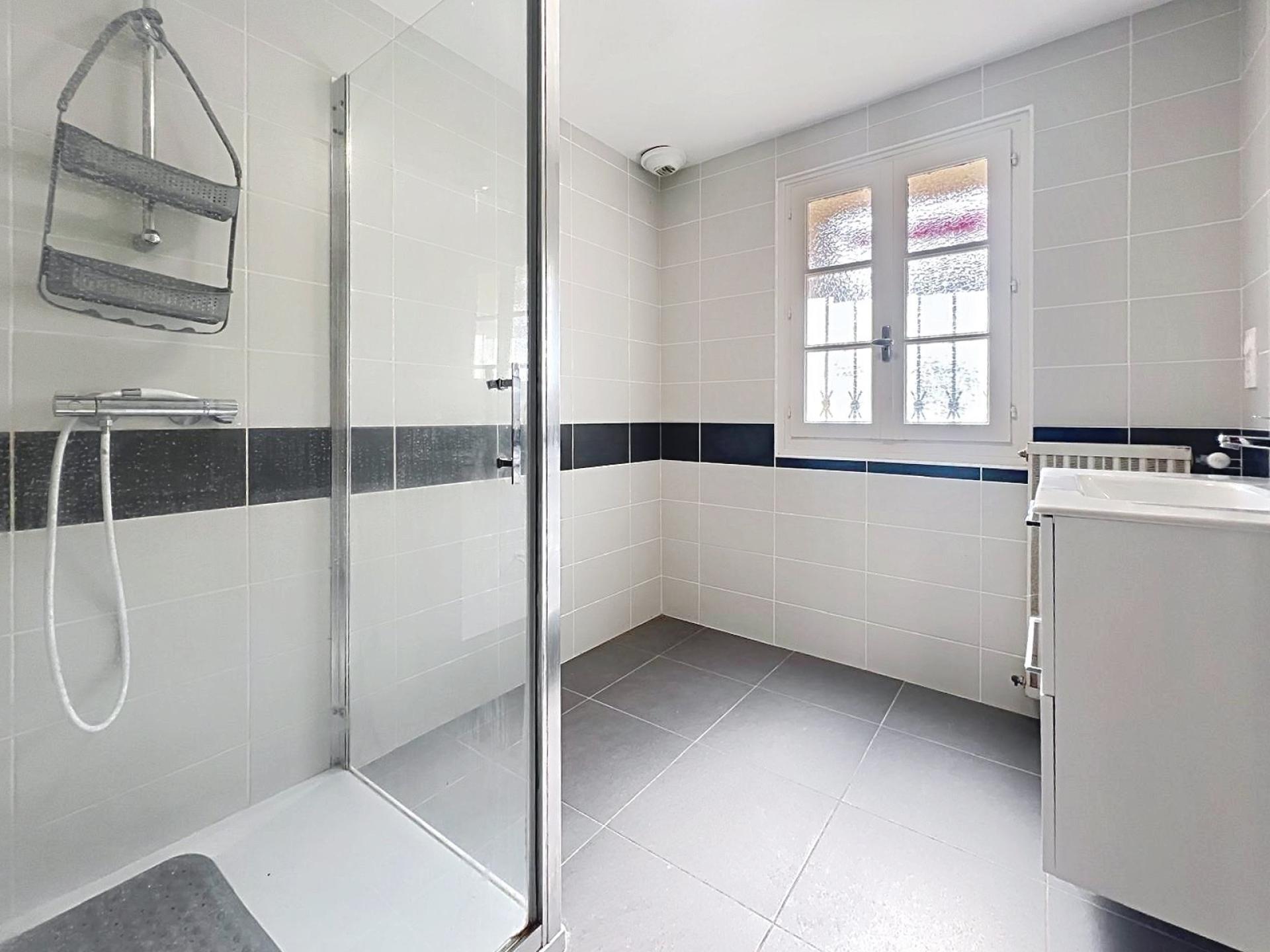 1 Grand séjour avec cheminée + 1 salle à manger, 4 chambres spacieuses, 3 salles d’eau dont une entièrement rénovée, 2 WC séparés (un par niveau). Chauffage individuel au gaz + eau chaude au gaz, garage double + place de stationnement privative extérieure devant et une petite cour. 2 entrées indépendantes, offrant des possibilités intéressantes (accès professionnel, location partielle, etc.) Les plus :