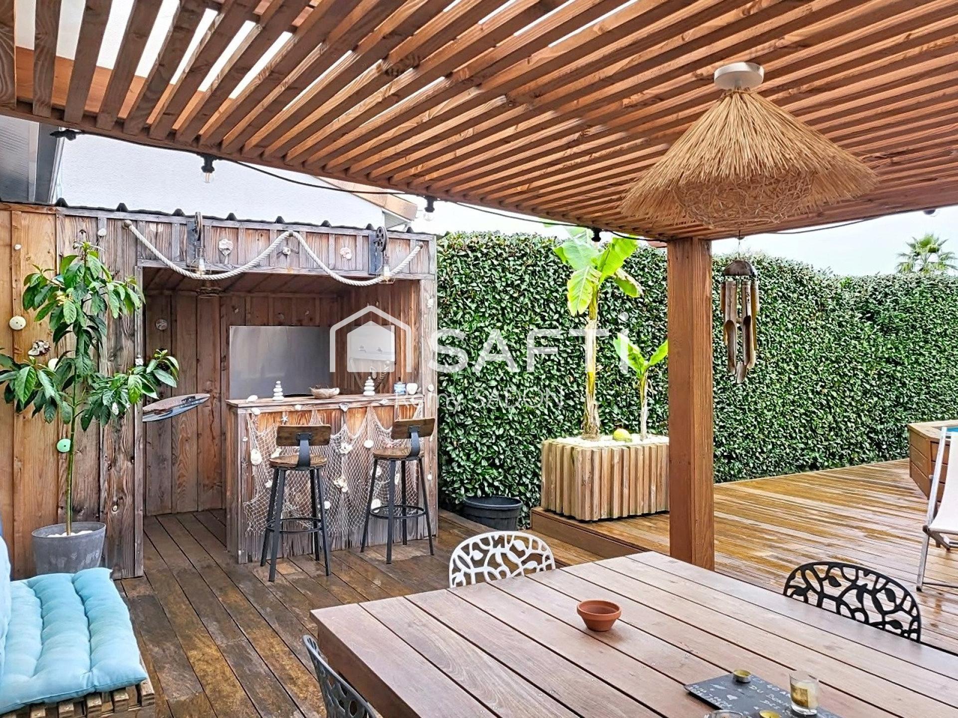 Sur un terrain de 480 m², avec une piscine hors-sol de 7,30m x 3,5m et une terrasse en bois exotique de près de 80m2 + cuisine d'été, les journées ensoleillées prendront une toute autre tournure!