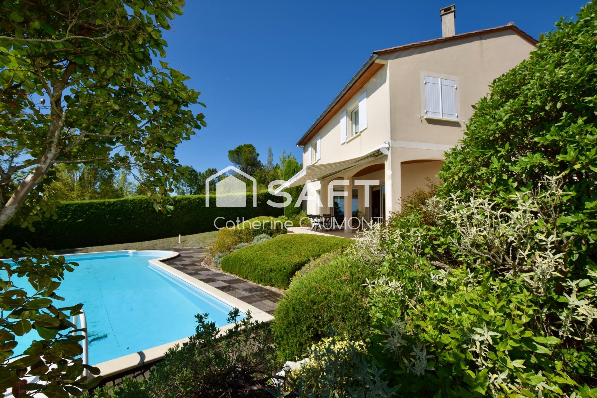 De chaque pièce nous accédons à la terrasse puis au jardin joliment arboré. La piscine 5X10 exposée sud sans vis à vis à une vue juste magnifique.