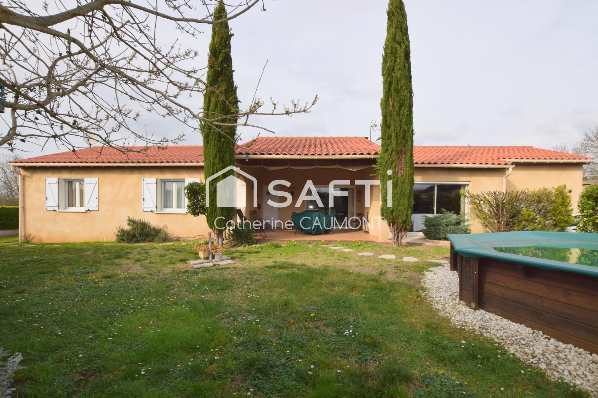 Proche de toutes commodités, dans le quartier résidentiel de Villegagne, je vous présente ce très beau plain pied de 135 m2, terrain arboré de 875 m2.