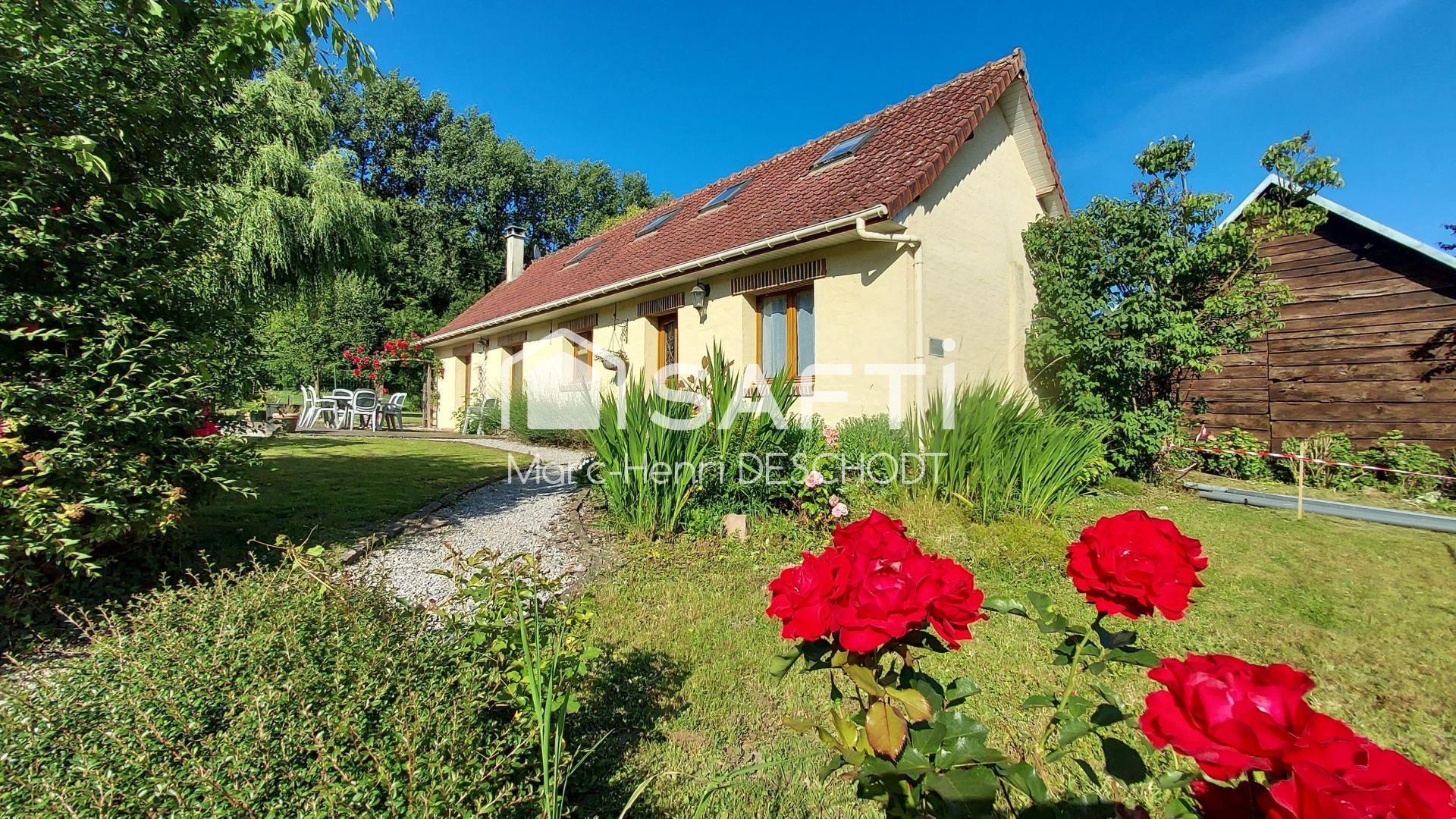 Située dans le paisible village de Caumont, soit à 10 kms d'Hesdin et 40 minutes de Berck plage, venez découvrir cette maison d'une surface de 95m² implantée sur une parcelle de terrain d'environ 650m².