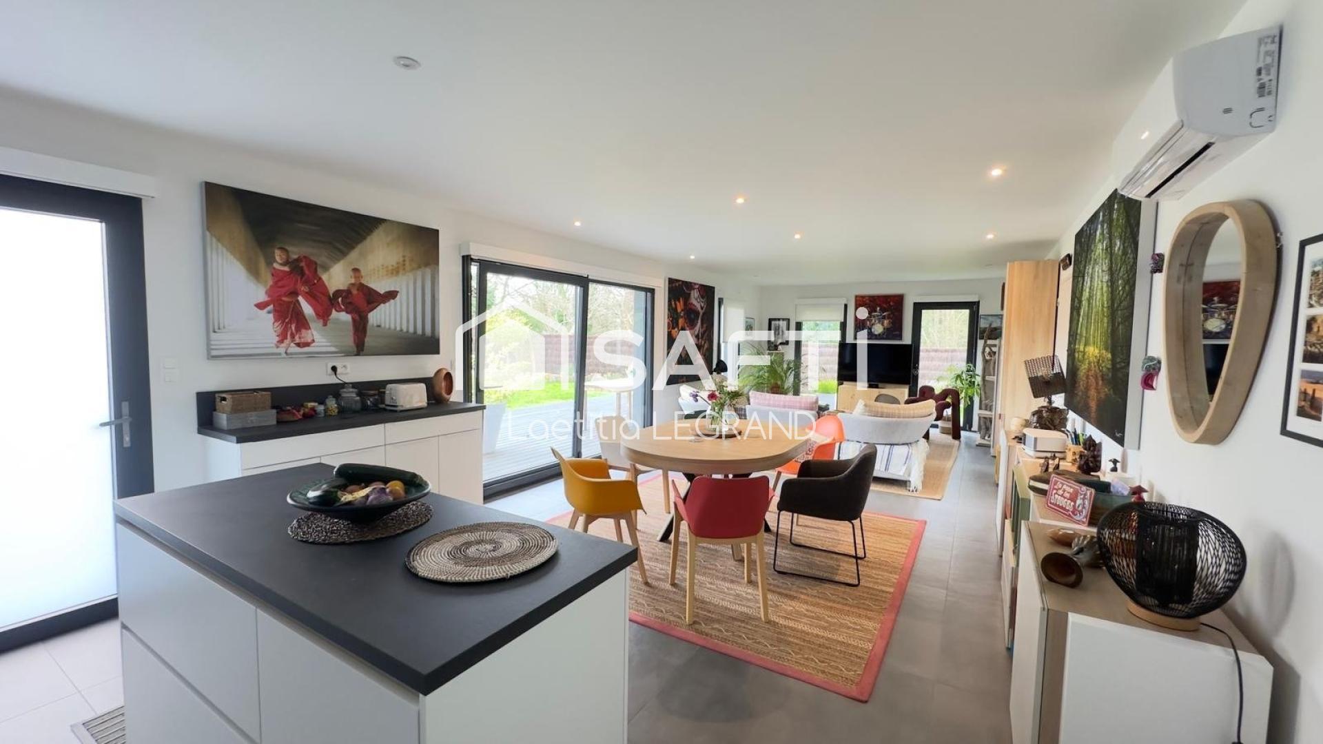 Cette maison de plain-pied construite en 2021 sur un terrain de 763 m² disposant de 4 pièces. Elle se compose d'un séjour lumineux, d'une cuisine entièrement équipée et aménagée, d'un bureau fonctionnel, de deux salles d'eau à italienne, de deux chambres confortables et de deux toilettes indépendantes avec point d'eau. Un garage attenant offre un espace de rangement supplémentaire. À l'extérieur, un jardin soigné, une terrasse accueillante et un carport complètent cet ensemble harmonieux, invitant à la convivialité et à la sérénité.
