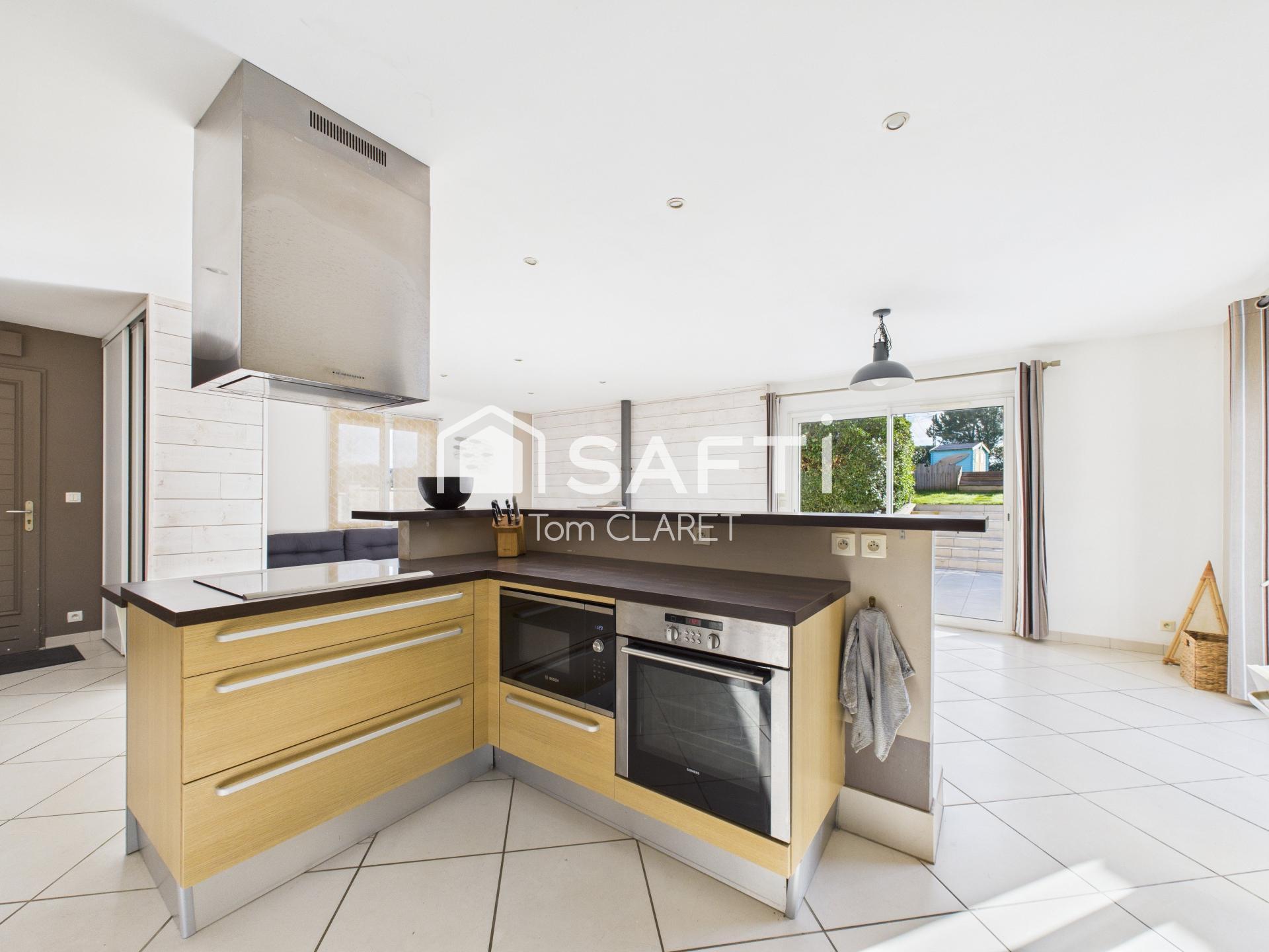 Située à Laruscade à 5 minutes de Cavignac cette magnifique maison contemporaine de 123 m² offre un cadre de vie exceptionnel grâce à sa luminosité, son aménagement optimisé et son excellent état d’entretien. Elle se compose d’une grande pièce de vie très lumineuse ouverte sur une belle terrasse et un jardin paysager, d’une cuisine aménagée, d’un cellier et d’une buanderie. La partie nuit comprend quatre chambres, ou trois chambres plus un bureau selon vos besoins, une salle de bain avec baignoire et douche. Les extérieurs sont tout aussi qualitatifs, avec une piscine 8x3,5, un chalet de 19 m² idéal pour un espace de stockage ou une activité libérale / artisanale, un atelier de ¨14m² et un superbe jardin qui complète harmonieusement l’ensemble. Cette maison, rare sur le secteur, offre de très belles prestations et ne nécessite aucun travaux.