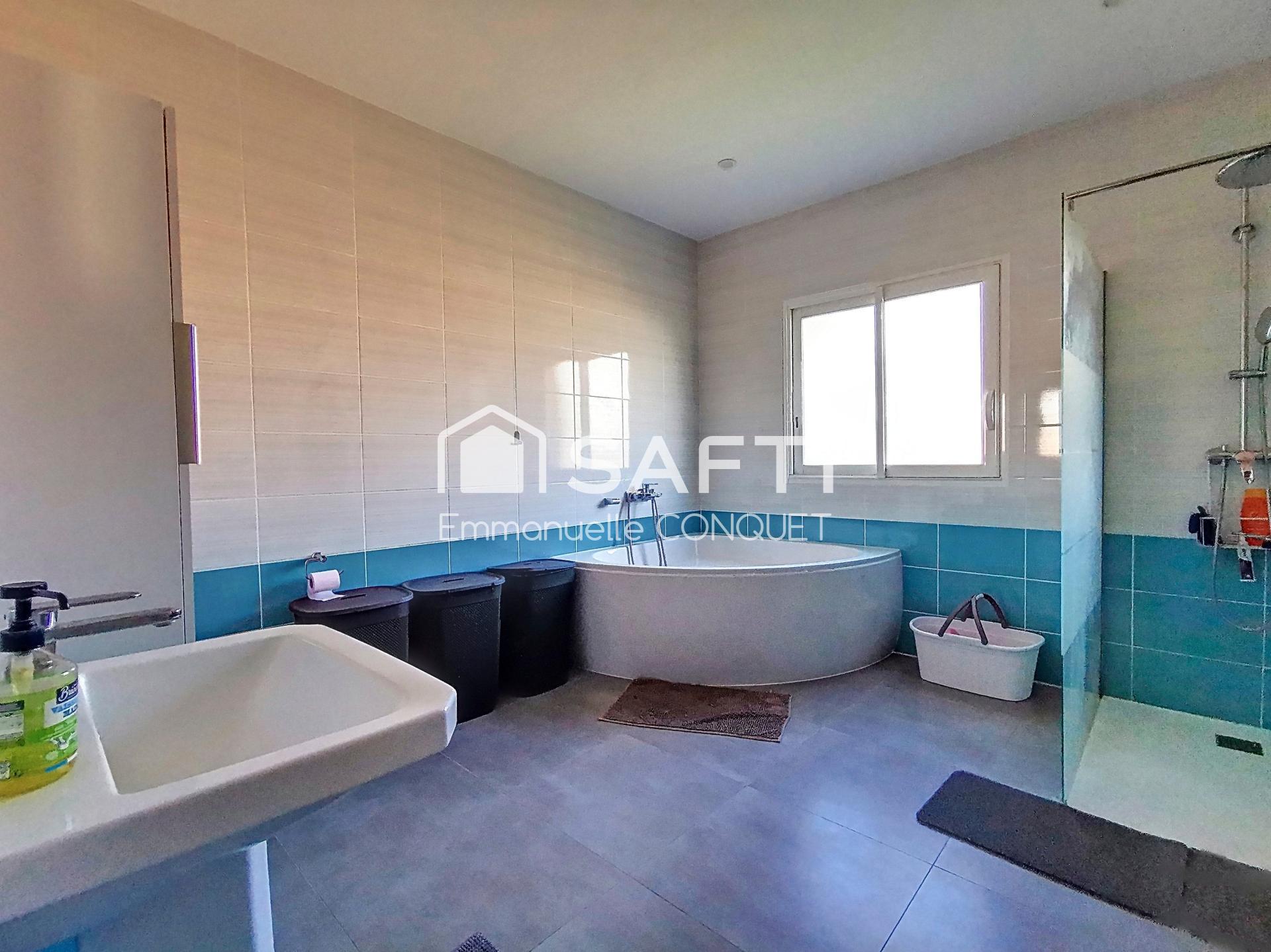 Profitez d'un espace de vie lumineux de 60 m² avec cuisine américaine, parfait pour vos moments de convivialité, de 4 grandes chambres équipées de placards, idéales pour accueillir votre famille, d'une grande salle de bain avec douche et baignoire d'angle pour votre confort, d'un grand cellier/buanderie offrant un espace de rangement supplémentaire et de 2 WC.