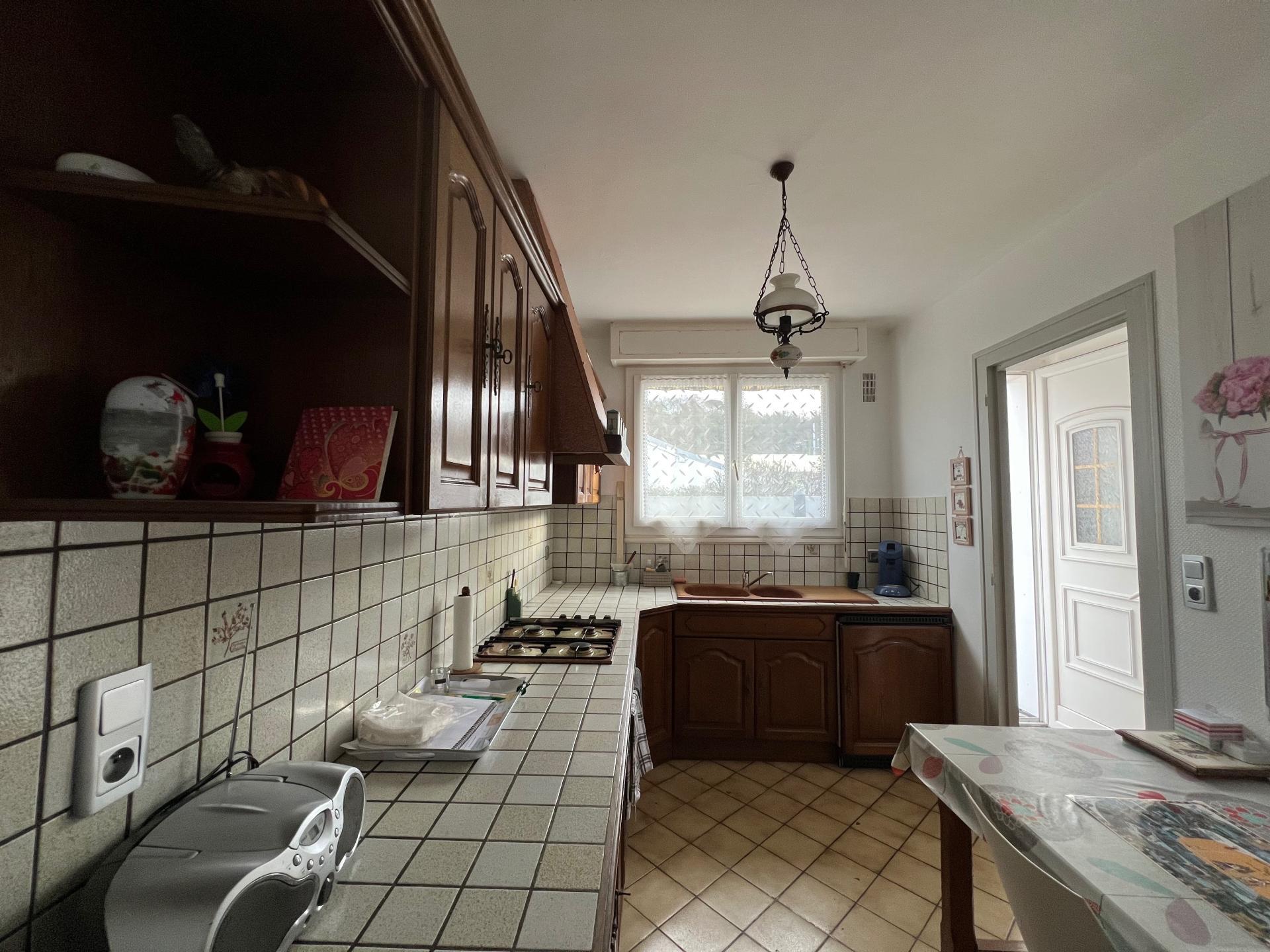 Toiture refaite il y a deux ans, double vitrage, mur non porteur entre cuisine et salon, grand garage et tout à l'égout.