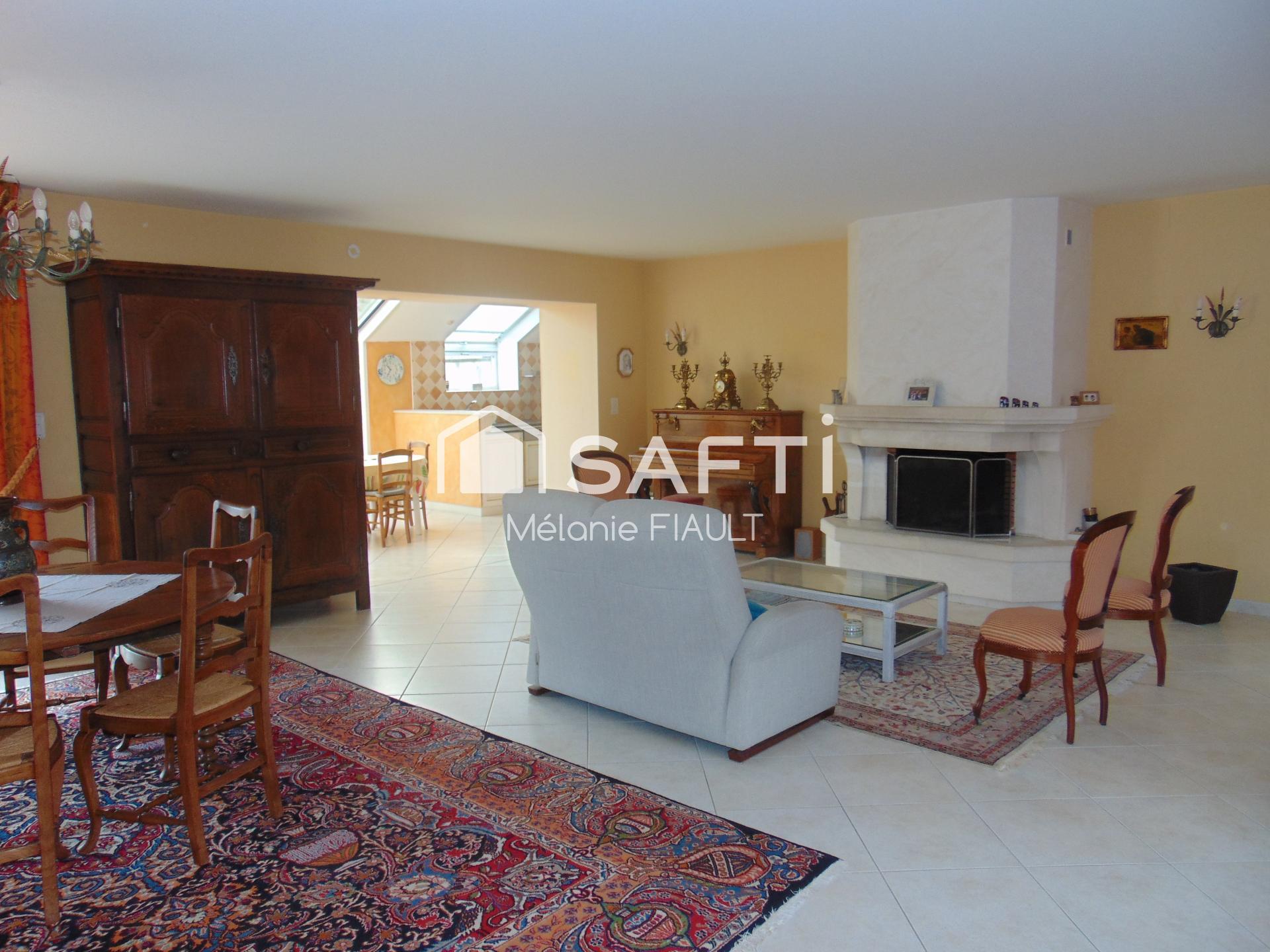- Une vaste pièce de vie lumineuse avec cheminée à foyer ouvert