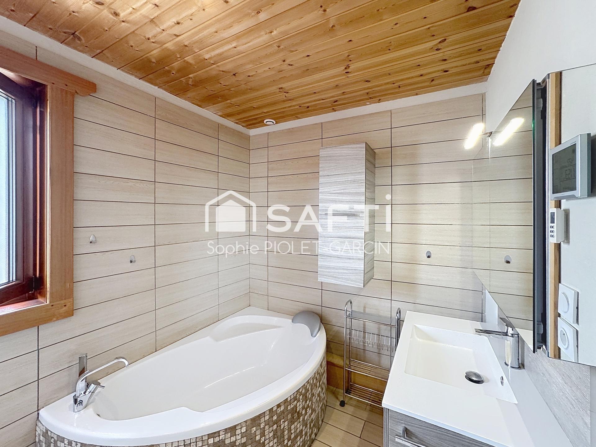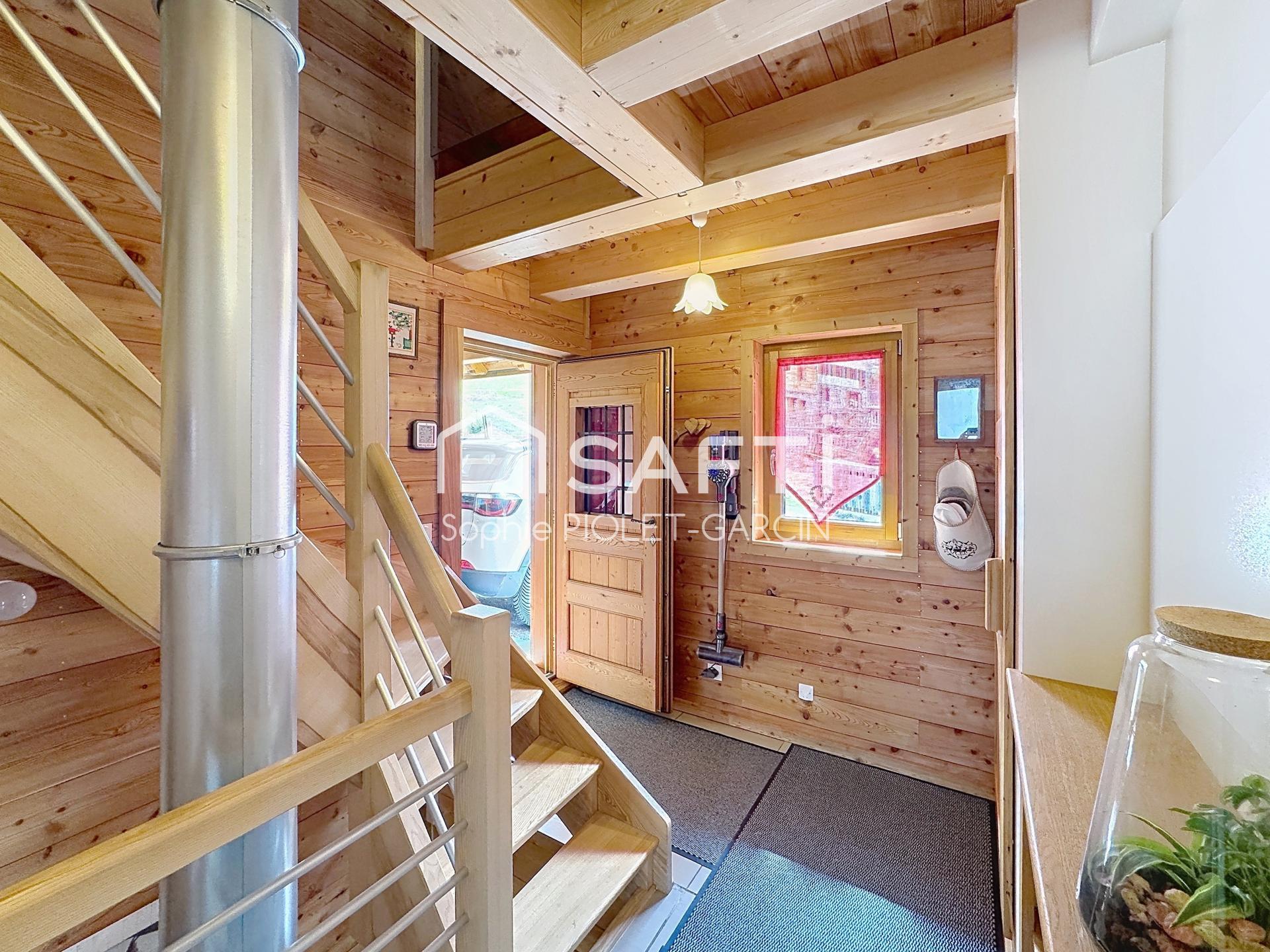 Aucun travaux à prévoir pour ce chalet aux prestations de qualité : poêle à bois, VMC double flux, menuiseries en double vitrage, ainsi que des balcons au niveau des chambres.