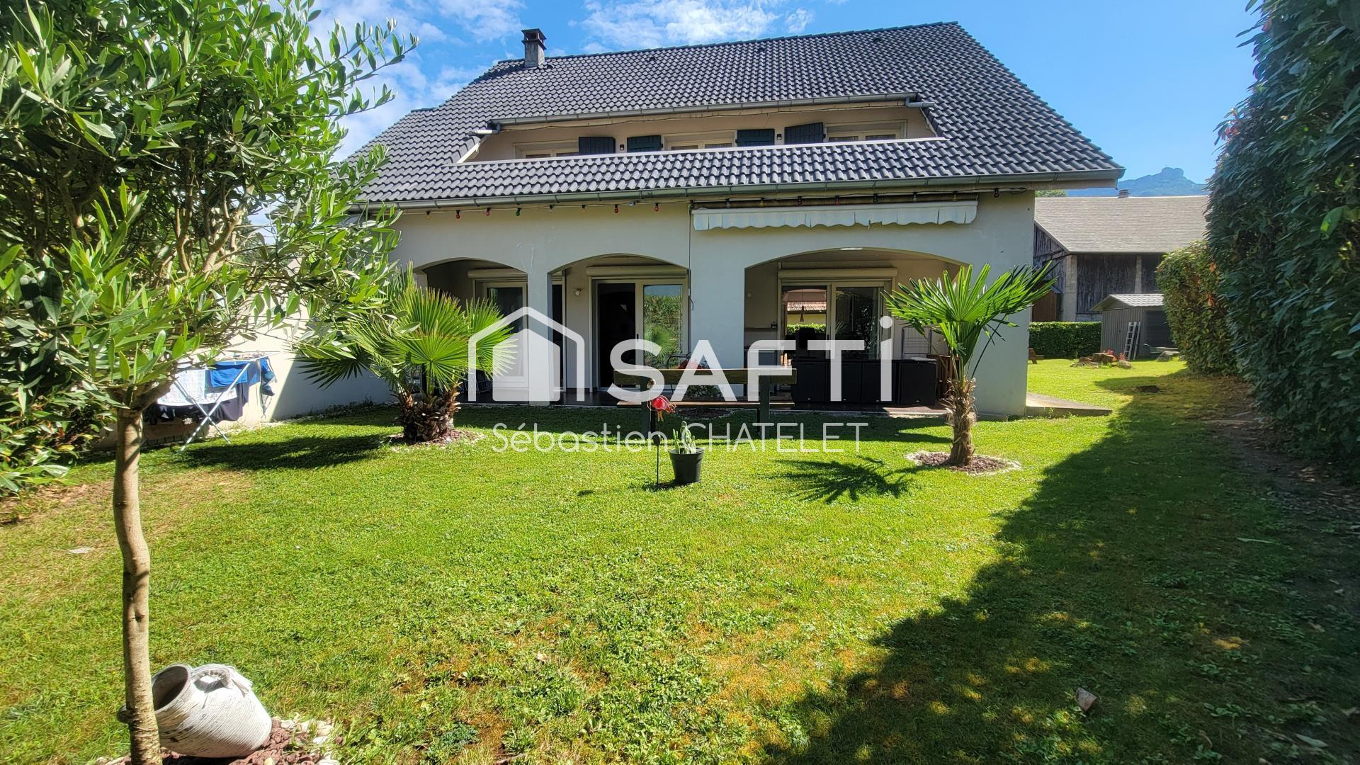 À deux pas des commerces, écoles et transports, cette maison de 190 m² au sol offre un cadre de vie privilégié. Nichée dans un environnement calme et verdoyant, à proximité du château de Candie, elle se situe à seulement 3 min de l’autoroute, reliant Lyon et Genève en 55 min. Vous serez séduit par ses volumes généreux et sa luminosité. Le rez-de-chaussée propose un vaste séjour de 60 m² avec cheminée, une grande cuisine conviviale et un bureau de 24 m² pouvant devenir une suite parentale. À l’étage, 4 belles chambres, dont une avec salle d’eau, ainsi qu’une salle de bain complètent l’espace nuit. À l'extérieur, un jardin paysagé de 1 070 m² avec terrasse et deux dépendances . Maison parfaitement entretenue, équipée d’un chauffage au gaz de ville et d’une VMC double flux pour un confort optimal.