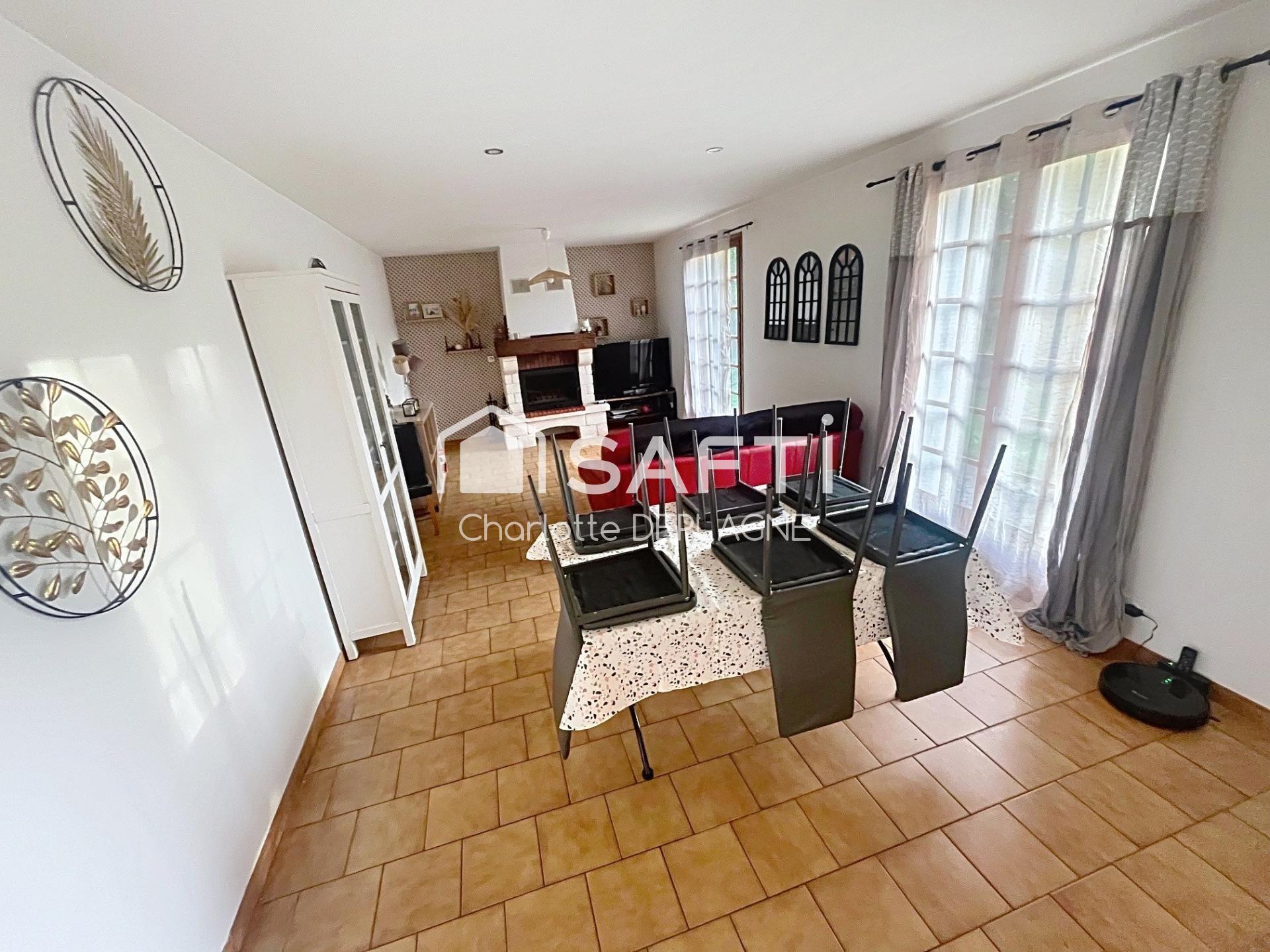 À l'intérieur, cette maison de 90 m² construite en 1984 propose un agencement pratique avec ses 3 chambres, une cuisine séparée et équipée, un salon chaleureux avec insert bois, une salle de bain et un WC séparé. Idéale pour une vie de famille confortable, elle offre des espaces bien définis et fonctionnels pour le quotidien.