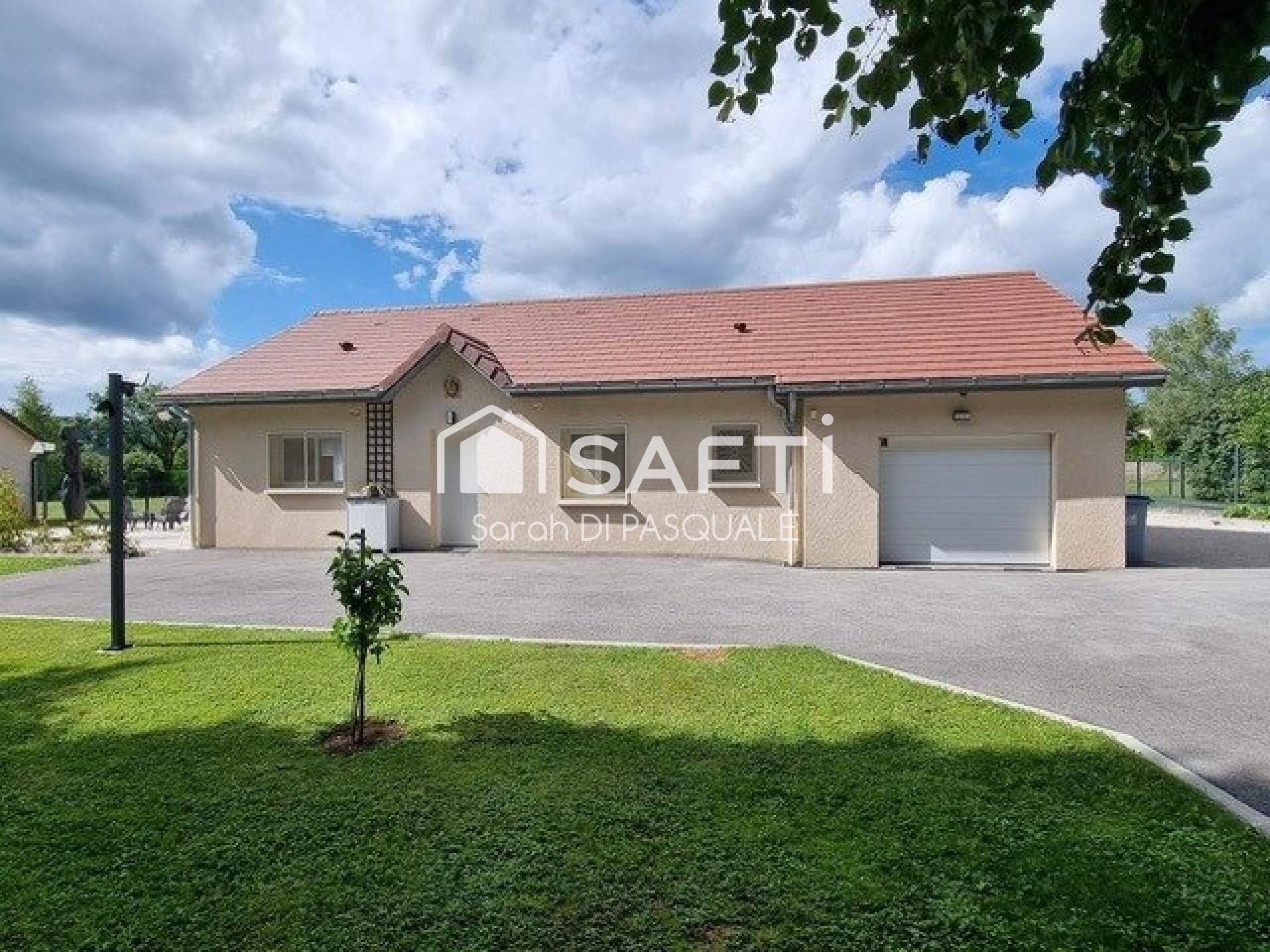 Cette charmante maison est située à 10 min de Champagnole, dans un cadre paisible de campagne, idéal pour les amateurs de tranquillité. À proximité se trouve une école, parfait pour les familles. La maison de plain-pied construite en 2016 est implantée sur une parcelle de 1001 m² entièrement clôturée, offrant intimité et sécurité.