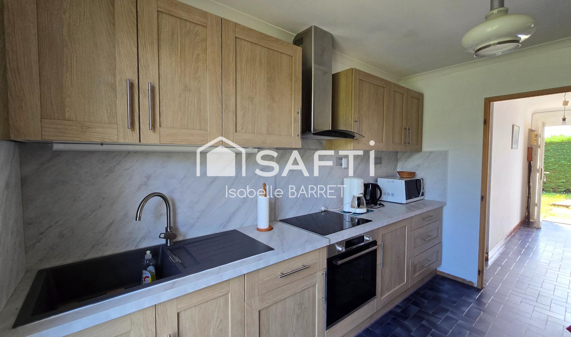 Implantée sur un terrain clos de 779 m², la propriété offre un bel espace extérieur, idéal pour profiter de moments de détente en famille ou entre amis.