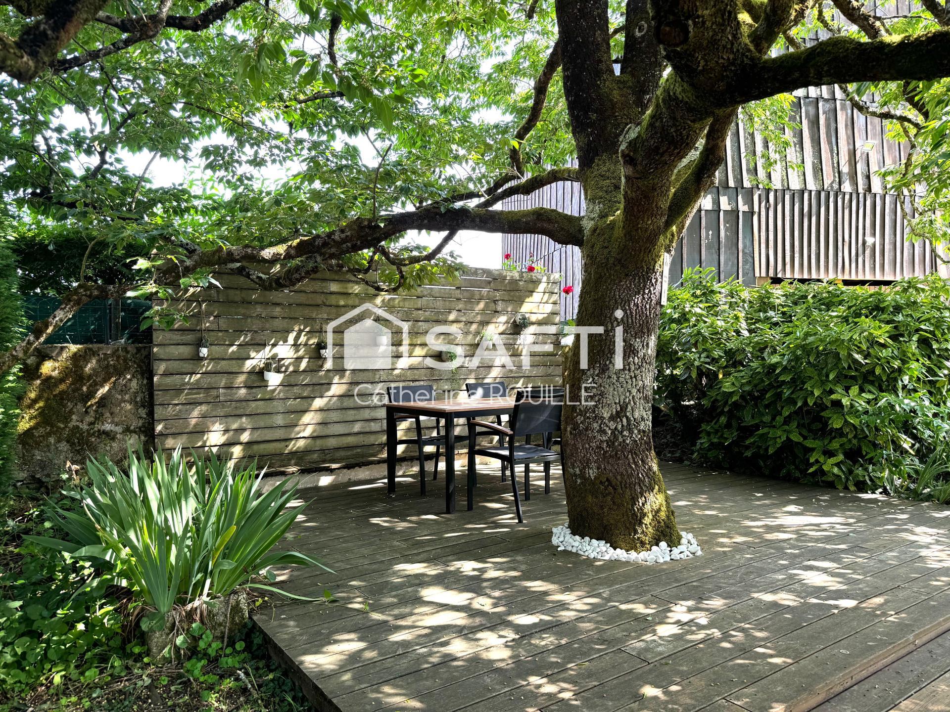 Indépendamment de la maison et légèrement en retrait se trouve une petite maison isolée et chauffée (22m2) idéale pour une profession libérale ou autre.