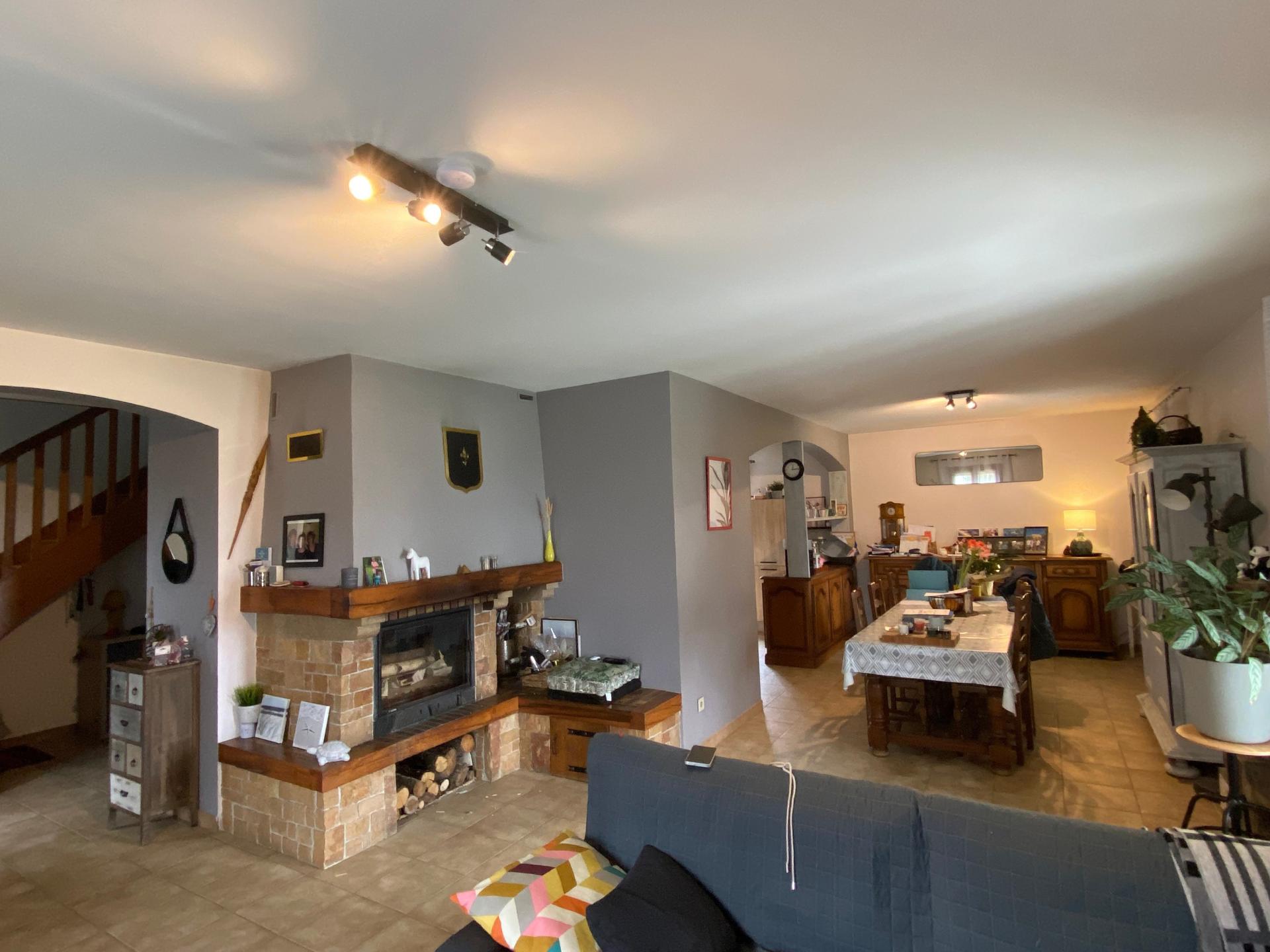 . Cuisine aménagée/équipée semi ouverte sur salon et salle à manger (cheminée insert). Très grande terrasse (store banne) accessible depuis la cuisine et la pièce à vivre.