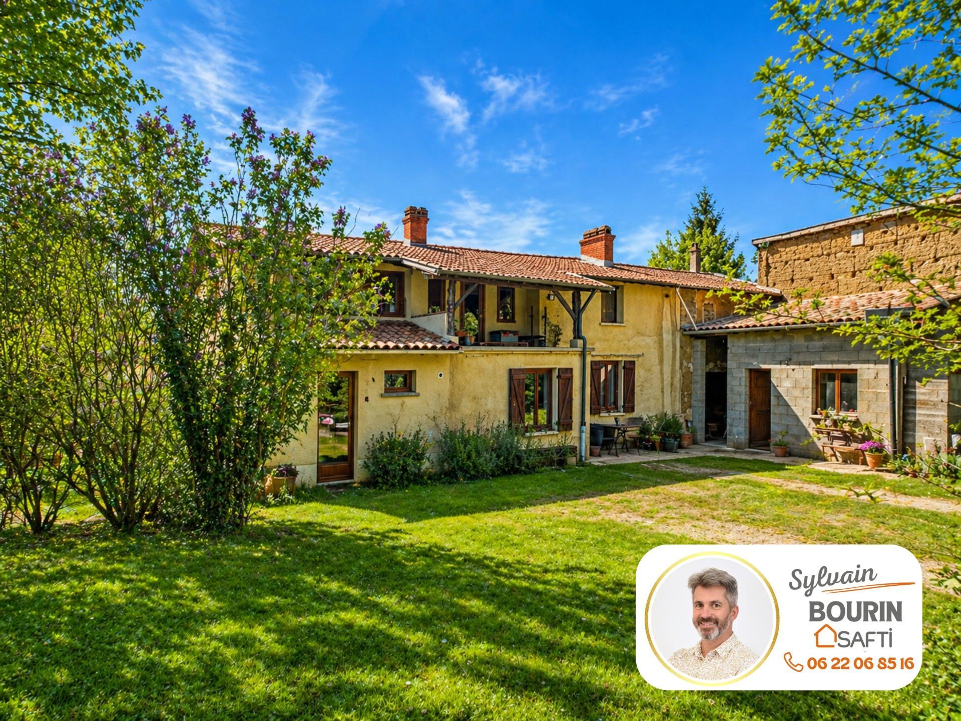 Cadre champêtre, 187 m², 4 chambres + mezzanine, terrain 1375 m², poêle à bois, accès rapide Lyon & Villefranche