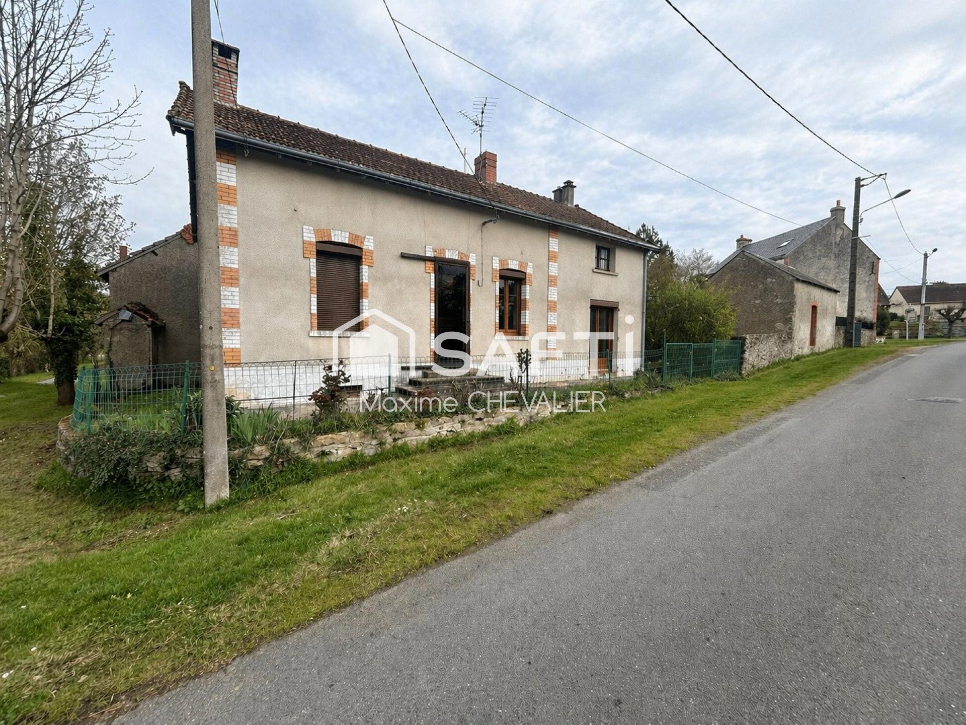 Maison de charme de 84 m² située à la sortie du village de Cluis, dans un environnement calme et verdoyant, sur un terrain clos de 1786 m².