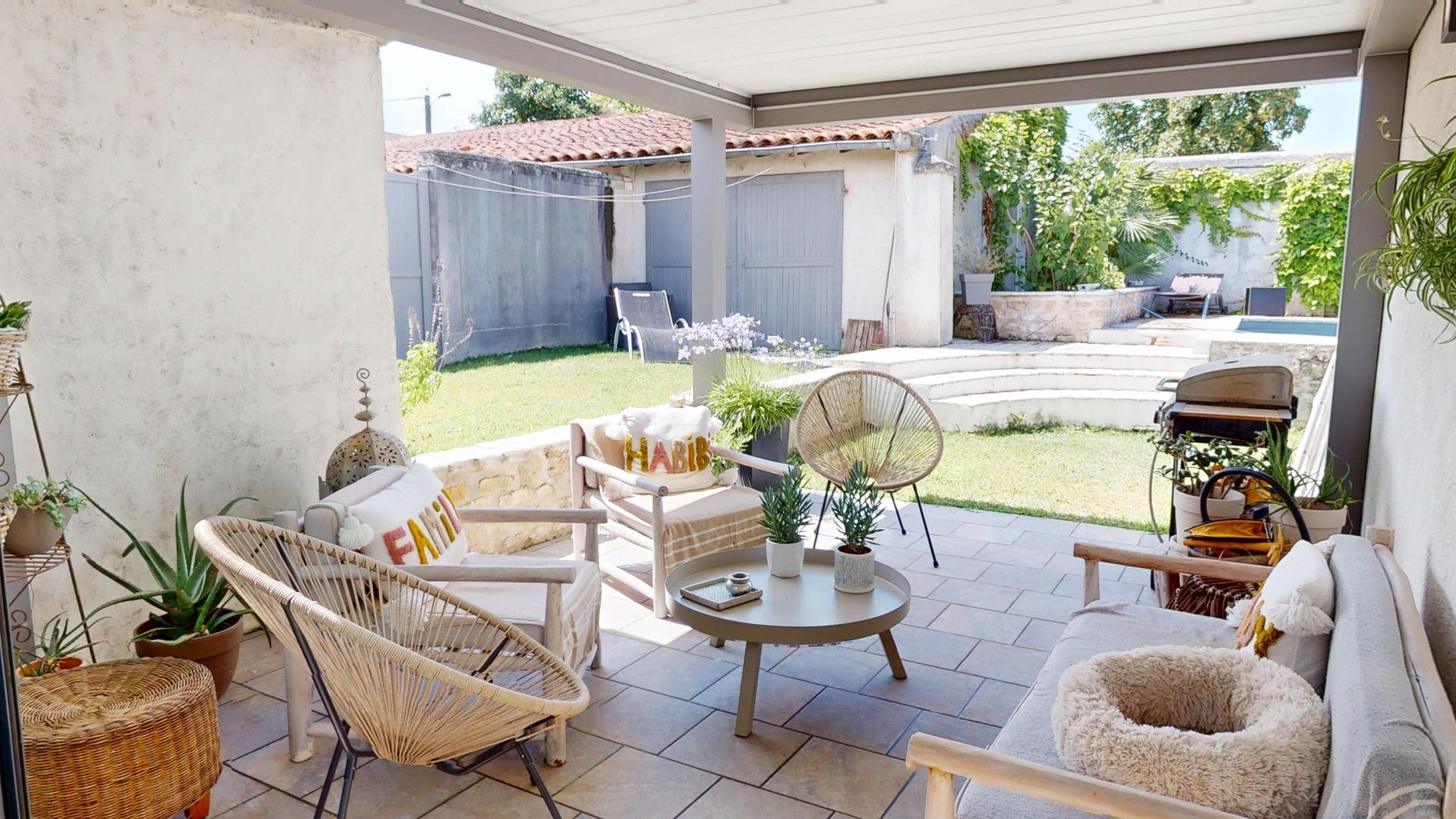 À l'extérieur, une piscine et une dépendance offrent des espaces de détente supplémentaires. Avec un terrain de 675 m², cette maison spacieuse et fonctionnelle est un véritable havre de paix à Cognac.