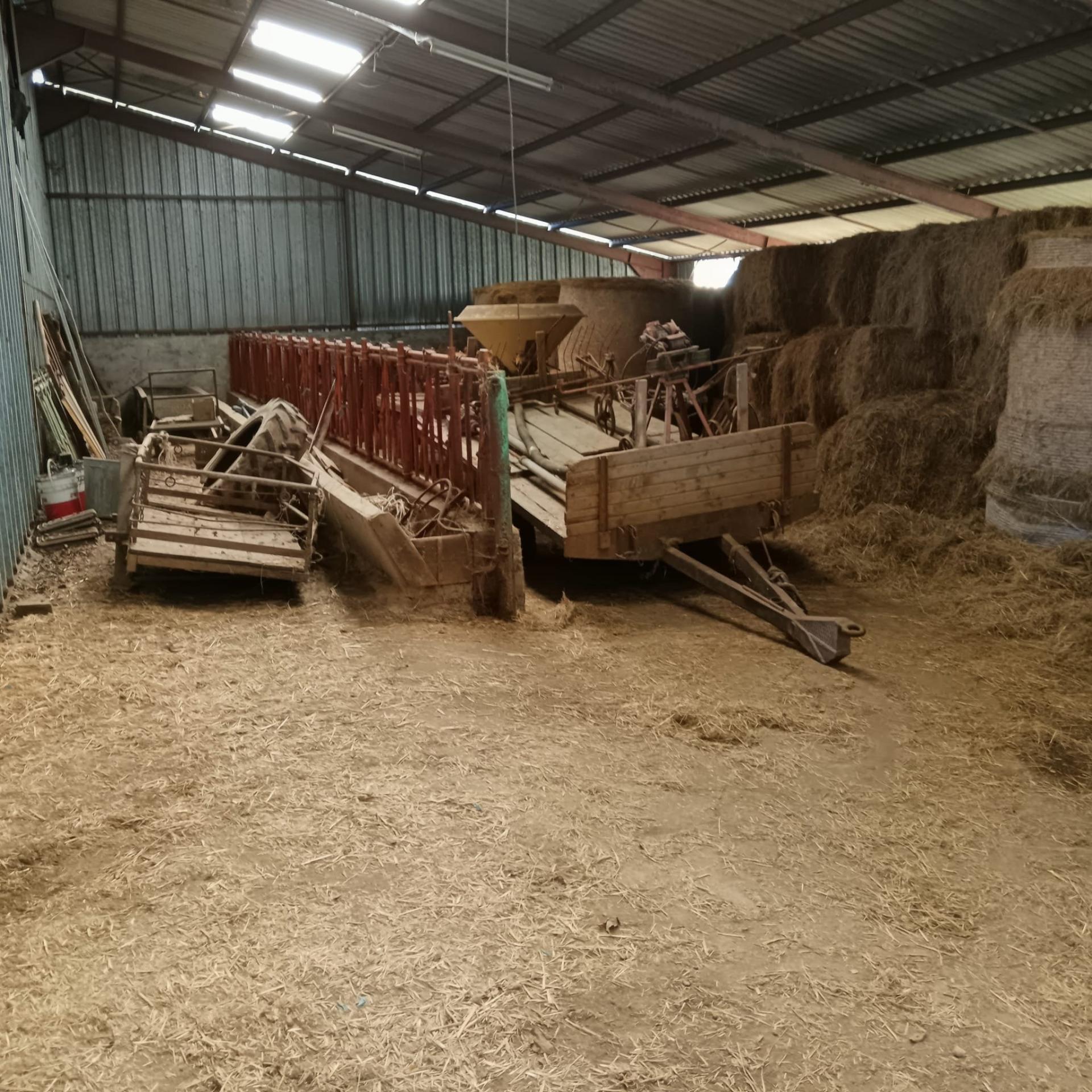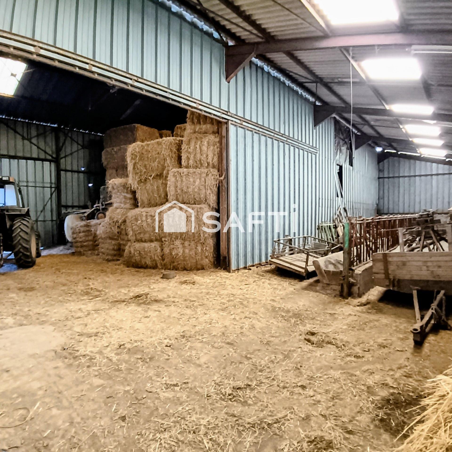 2 garages, dont un avec 4,50 m de hauteur, un hangar d’environ 600 m² idéal pour stockage ou activité professionnelle, et un terrain de plus de 1 000 m² à l’arrière (jardin, animaux, maraîchage).