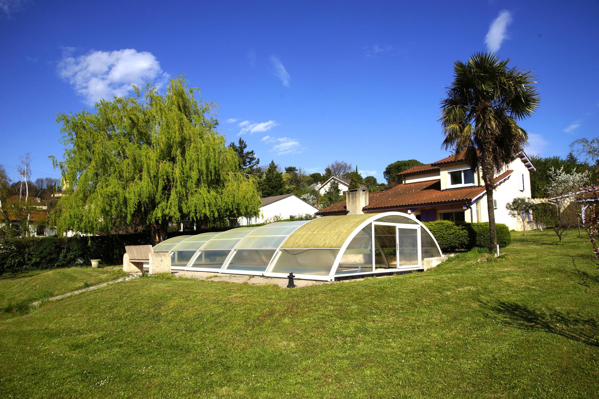 Ayant bénéficiée de certains éléments de rénovation (menuiseries, volets électriques, isolation), cette propriété vous offrira également de belles prestations : climatisation, portail automatisé, piscine sous abri, bel "espace carport" dont 2 places couvertes sous dépendances, cave, agréable jardin parfaitement entretenu avec de nombreux arbres fruitiers, spacieuse terrasse exposée plein sud, espace de vie confortable.