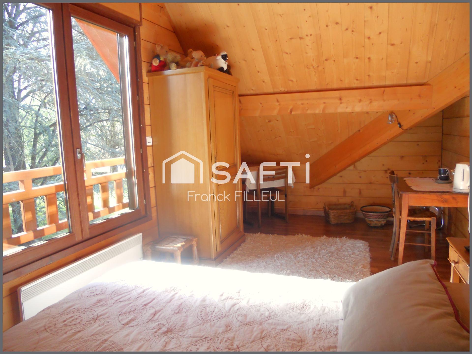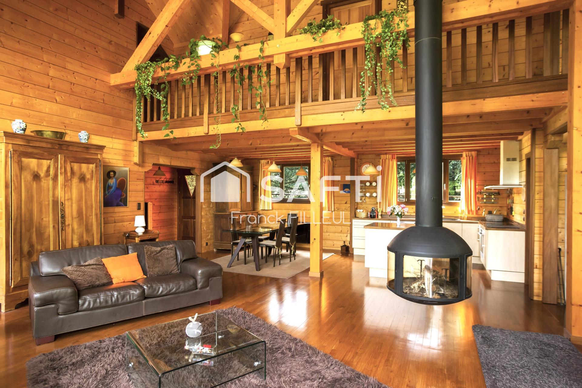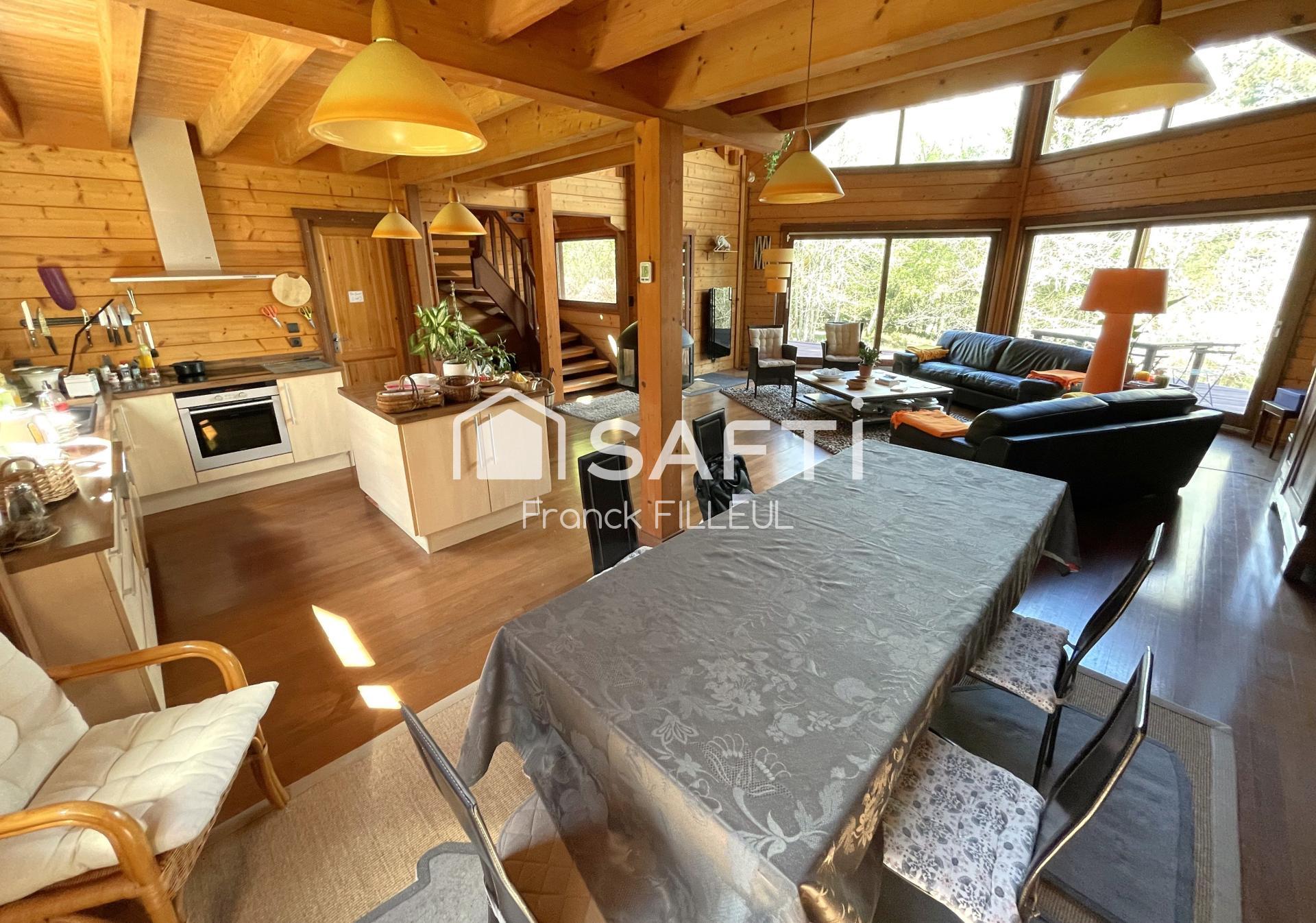A 5 min au sud de Limoges et un peu à l'écart du dynamique bourg de Condat sur vienne, splendide maison en madriers de bois dans un parc magnifiquement arboré!