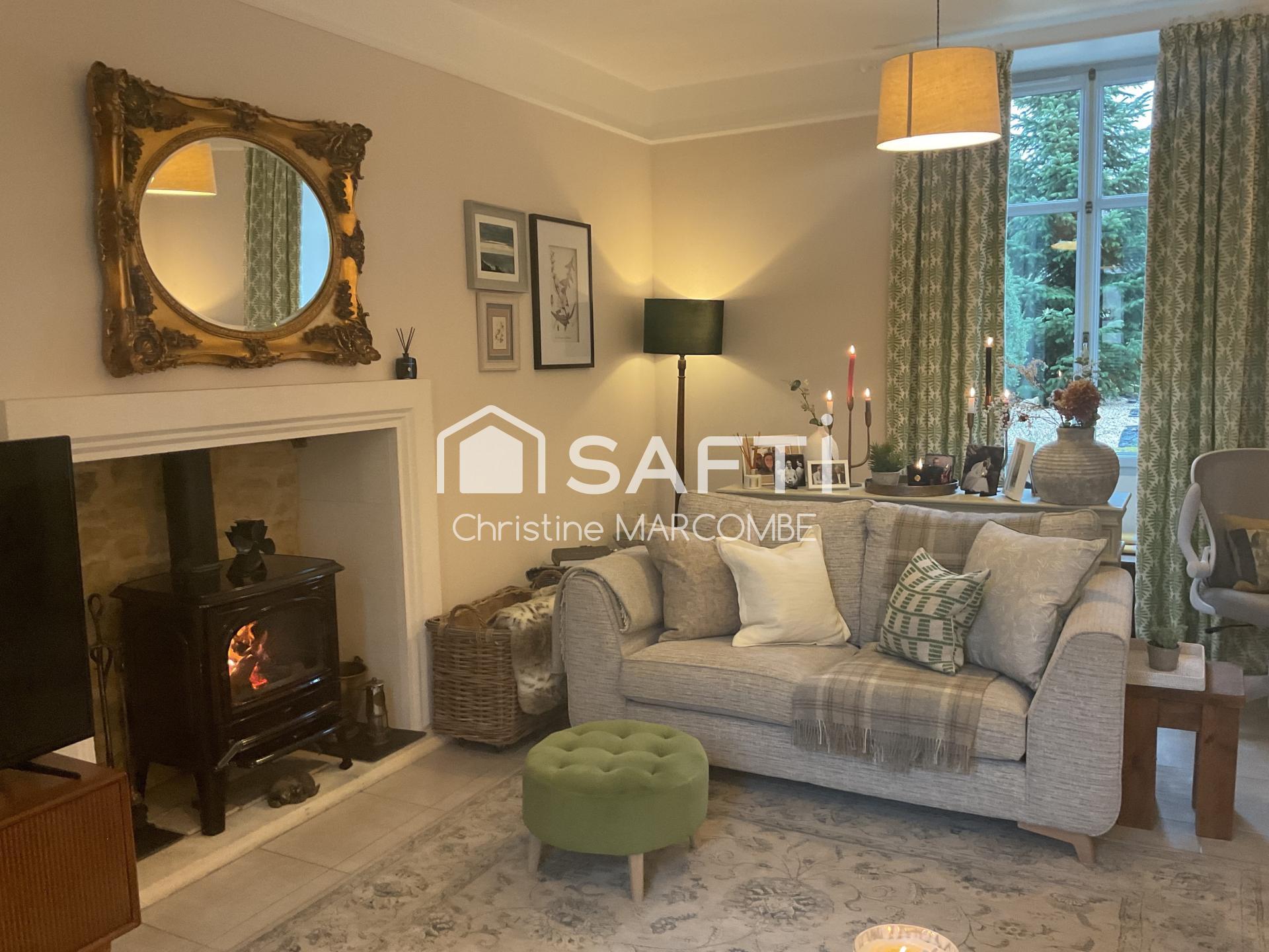 Cette remarquable maison de maître en pierre, édifiée en 1846, a été intégralement rénovée avec des matériaux de première qualité. Chaque détail a été soigneusement pensé : les parquets d’origine en chêne ont été préservés, les volumes sublimés et la décoration réalisée avec le plus grand goût.