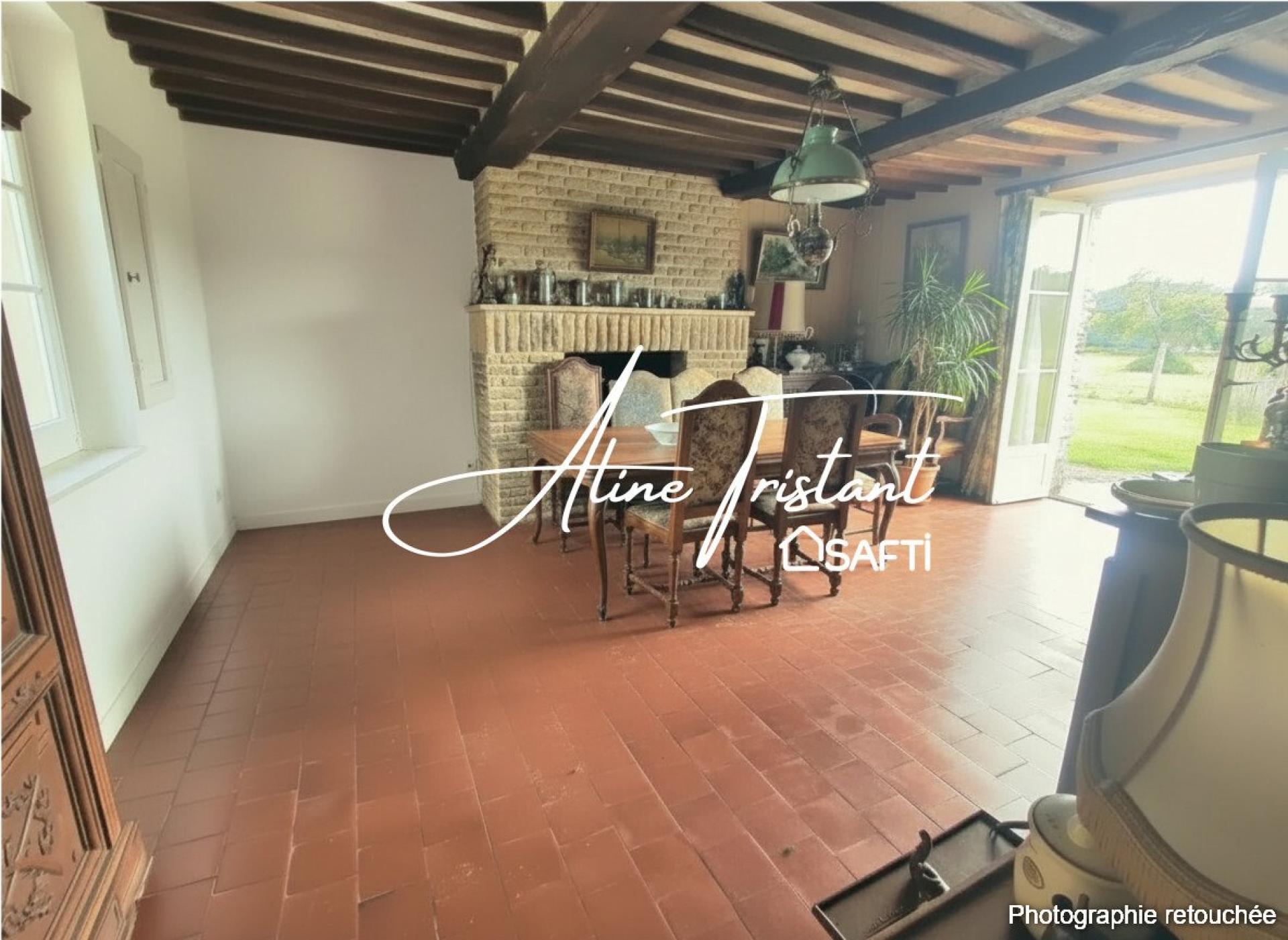 À l'intérieur, la maison de 145m² se distingue par sa pierre de 1695 menant à . L'entrée au rez-de-chaussée dessert, un séjour de 33m², un espace cuisine avec poêle à bois et un WC. À l'étage, deux grandes chambres de 32m² dont une avec dressing et salle d'eau offrent confort et intimité. Les cheminées dans la chambre et le séjour ainsi que le plancher en bois ajoutent une touche chaleureuse à cette demeure pleine de caractère.