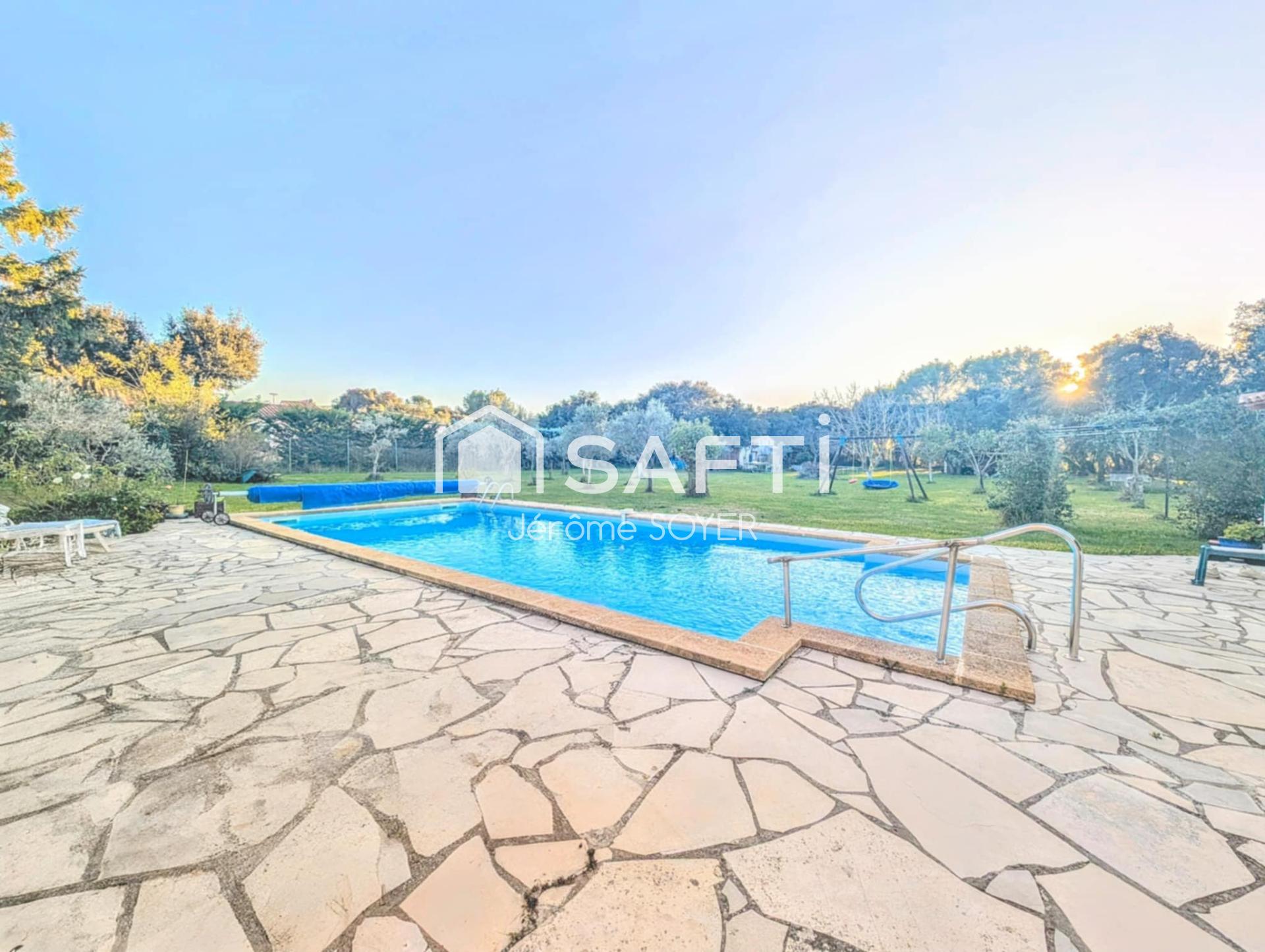 Jérôme SOYER propose : Cornillon-Confoux (13250), cette propriété bénéficie d'un cadre paisible en pleine campagne, offrant un environnement idéal pour les amoureux de la nature. Son exposition sud permet de profiter pleinement du soleil, tandis que son parc paysager et ses dépendances ajoutent du cachet à cette demeure. À l'extérieur, cette maison de 188 m² dispose d'un généreux terrain de 5531 m² alliant le présent aux traces du passé avec ses blockhaus qui seront un formidable terrain de jeux pour les enfants, l'espace piscine (10x4.5) et son pool house vous séduiront ainsi que la jolie terrasse fleurie. Les menuiseries en double vitrage et la baie vitrée assurent luminosité et isolation. On y retrouve également une cheminée dans le séjour, soulignant le côté chaleureux de la propriété. À l'intérieur, cette maison offre de nombreuses possibilités. Au rez-de chaussée un séjour de 31 m² ouvert sur une cuisine de 12 m², un toilette avec lavabo et une véranda orienté au sud. une chambre de 38 m², une buanderie de 10 m², un atelier et un garage de plus de 20 m². A l'étage une salle d'eau avec toilette et quatre chambres dont une suite parentale de 38 m².