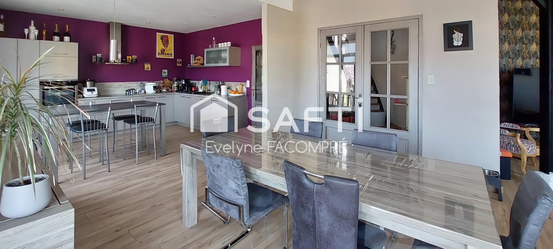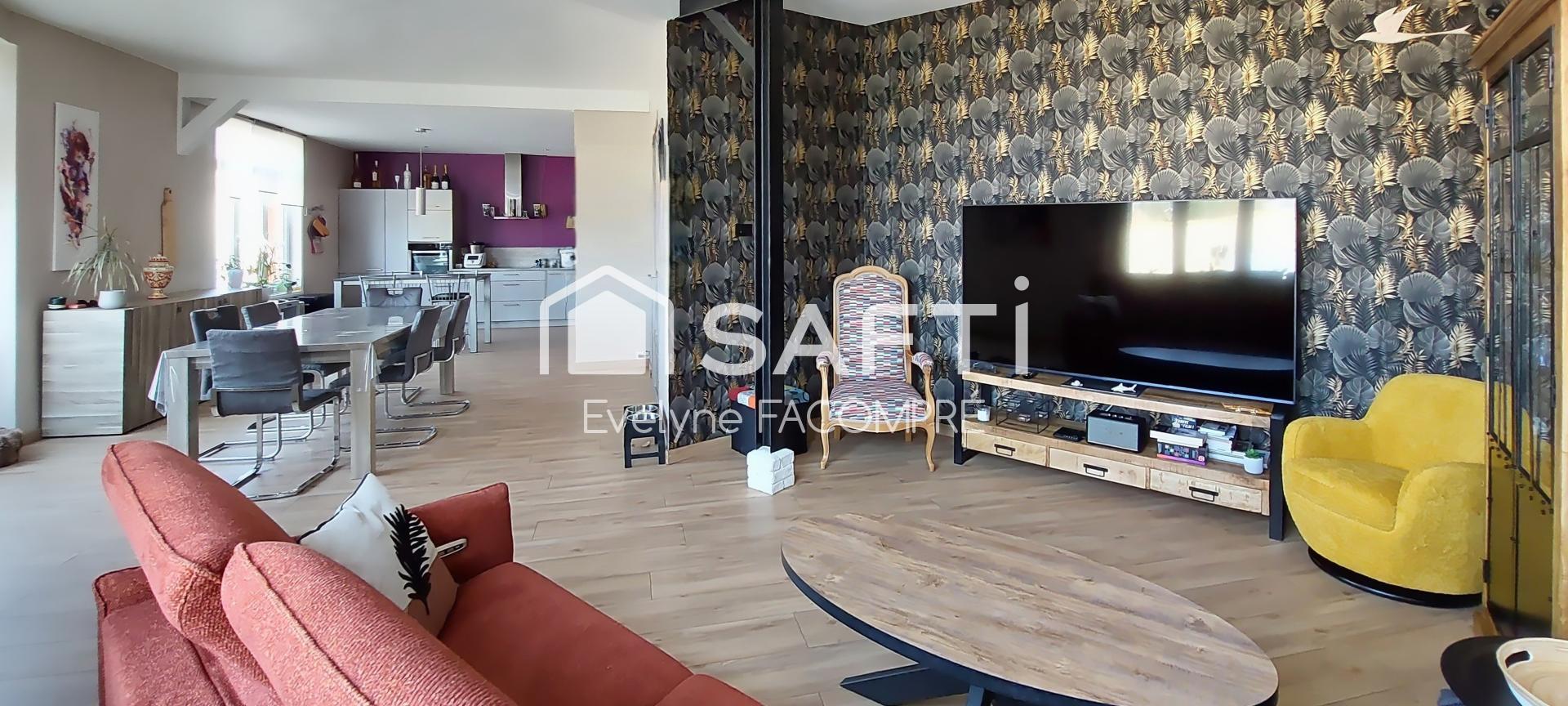 Evelyne Facompré - SAFTI vous présente cette spacieuse maison aux volumes exceptionnels, idéale aussi bien pour une résidence principale, un projet professionnel ou commercial.