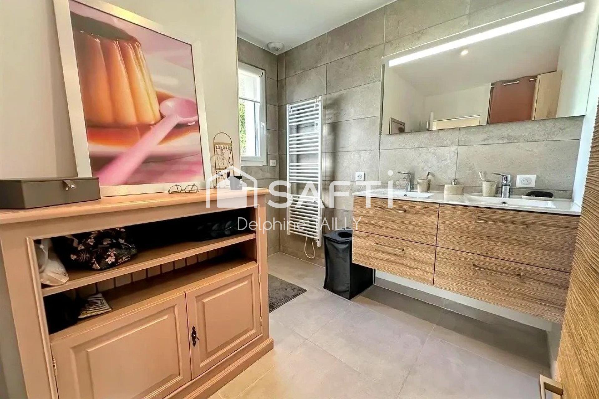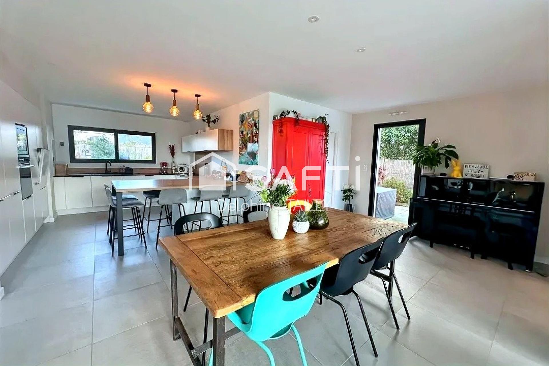 Maison 2021 RT2012 : faible conso, grand confort, pièces lumineuses, suite parentale, jardin paysagé, piscine chauffée, calme en impasse.