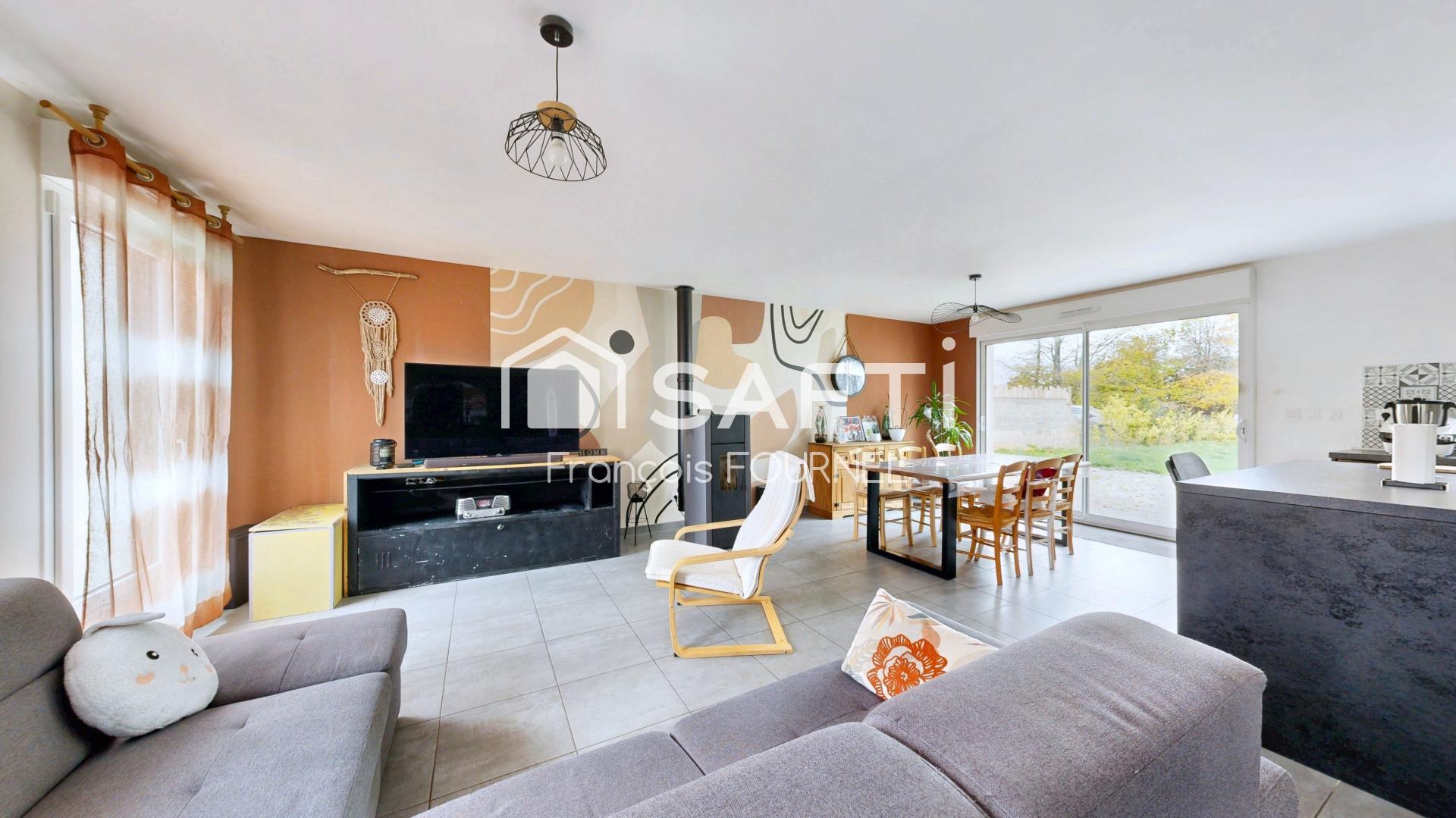 Superbe Maison récente (2020) de 5 pièces comprenant entrée, double séjour avec cuisine us équipée donnant sur terrasse et jardin, buanderie, 3 chambres, salle de bains, wc et garage.