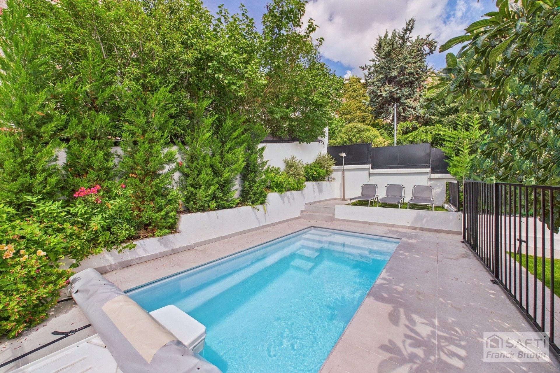 À deux pas du Parc de Bécon à Courbevoie, maison individuelle de 4 chambres, NON MITOYENNE, avec PISCINE, JARDIN et TERRASSE, édifiée sur un GRAND TERRAIN de 314 m².