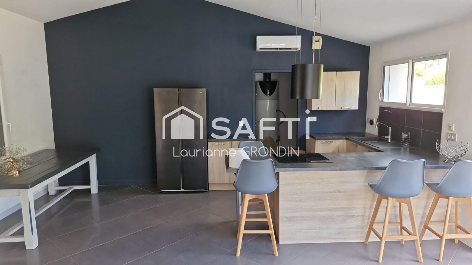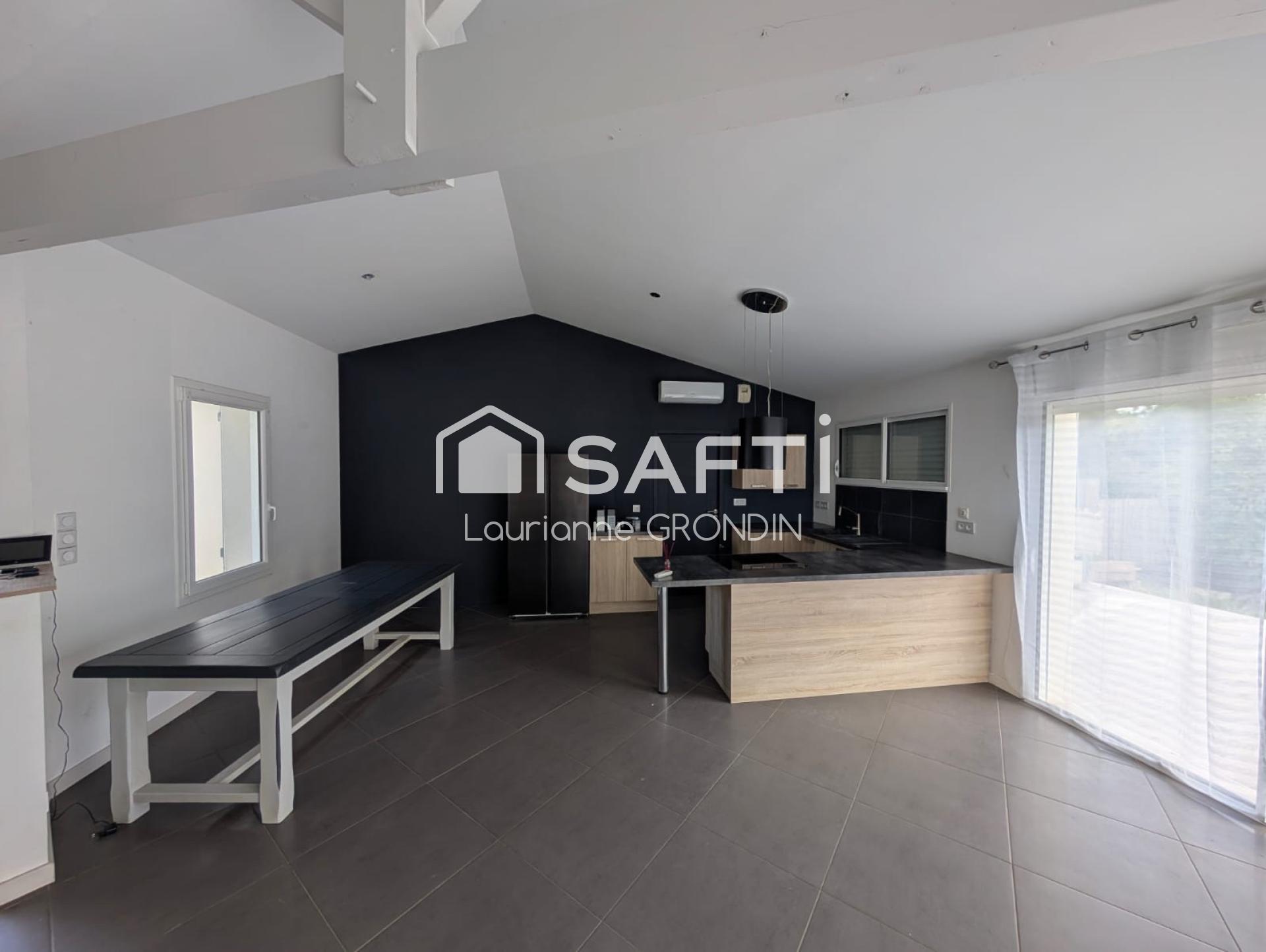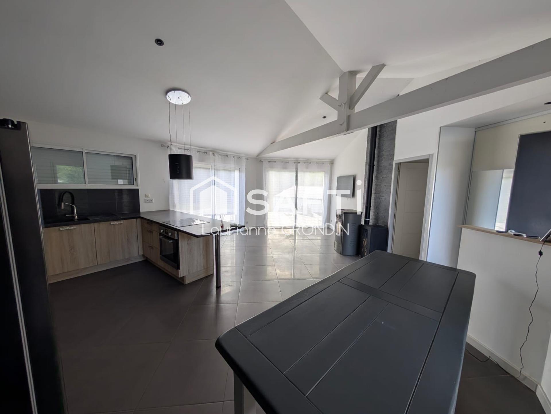 La maison, d’une surface habitable d’environ 85 m², offre tout le confort d’une construction récente et économe en énergie : menuiseries double vitrage, bonne isolation, poêle à granulés et climatisation réversible récente.