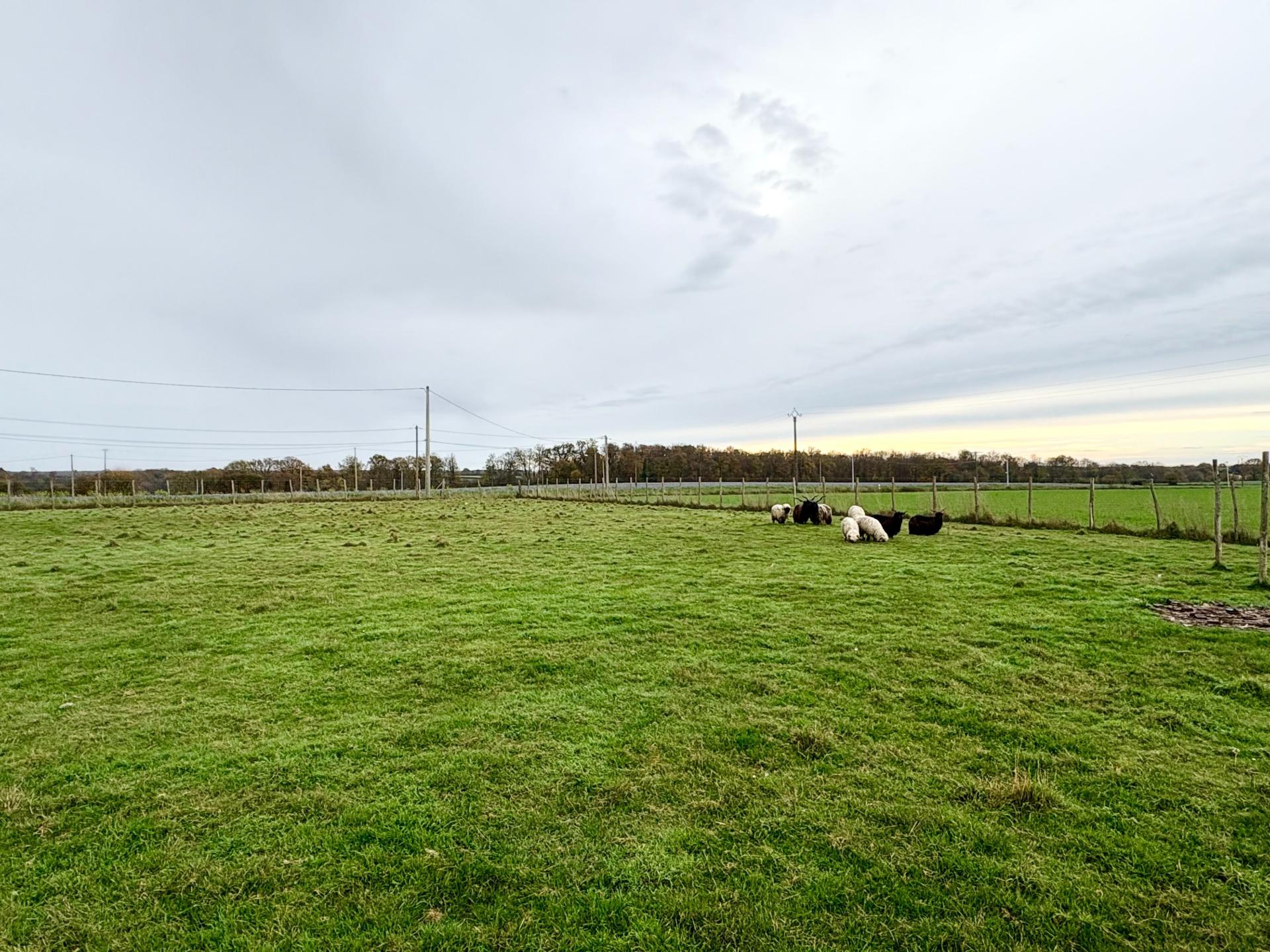 Le terrain, d'une superficie d'environ 8440 mètres carrés (soit près d'un hectare), est entièrement clôturé, sécurisant ainsi l'ensemble de la parcelle. Il est agrémenté d'une dépendance offrant des possibilités de stockage ou d'aménagement supplémentaires, ainsi que d'une charmante mare, ajoutant un cachet naturel et bucolique indéniable à la propriété.
