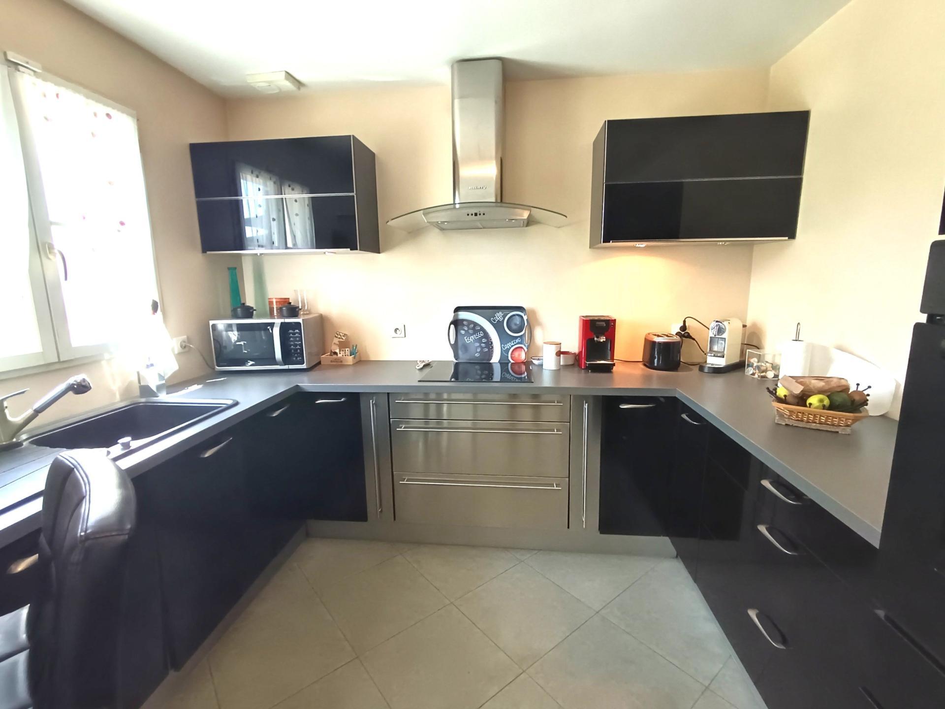 Entièrement clôturée par portail motorisé , elle se compose d'une entrée , bel espace de vie de + de 43 M2 avec cuisine aménagée et équipée récente , rangement , chambre , WC indépendant